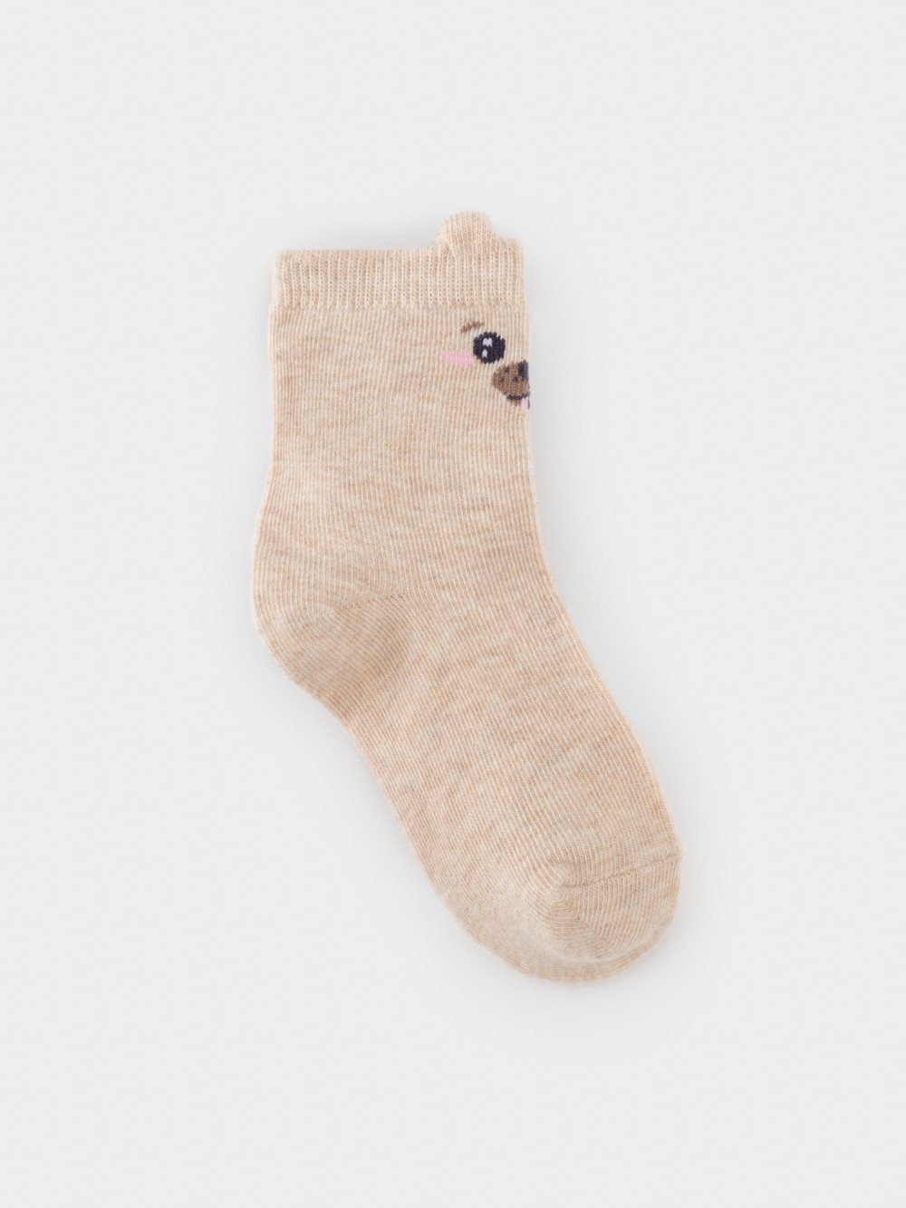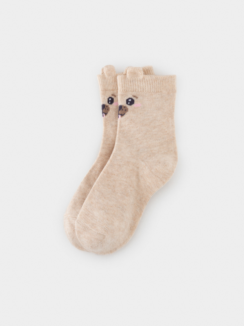 Носки длинные детские с формованной пяткой и эластичной резинкой по краю. Украшены рисунком и объёмными элементами. Изделие сохраняет форму и стойкий цвет после многочисленных стирок.