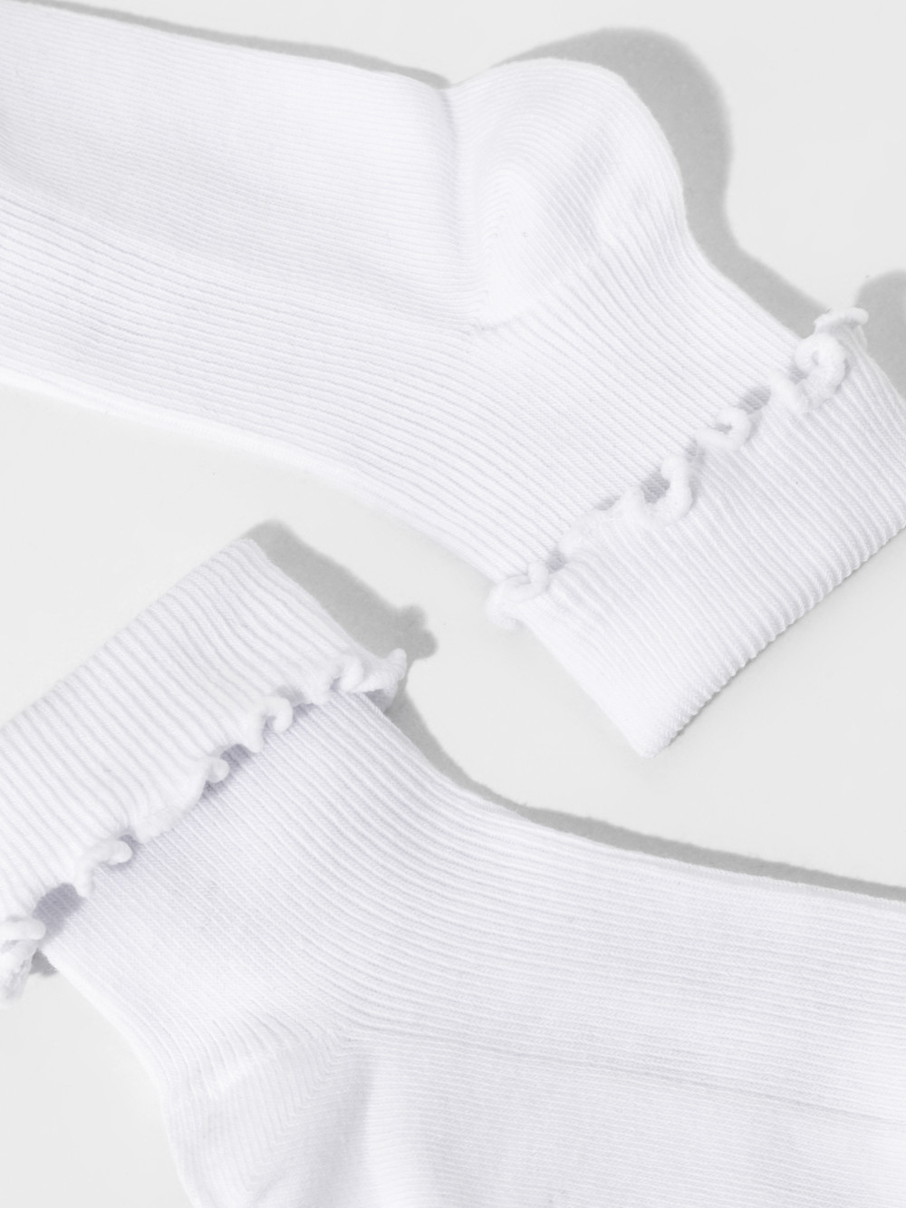 Комплект однотонных длинных носков с рюшей по краю верха для девочки. В комплекте 3 пары.