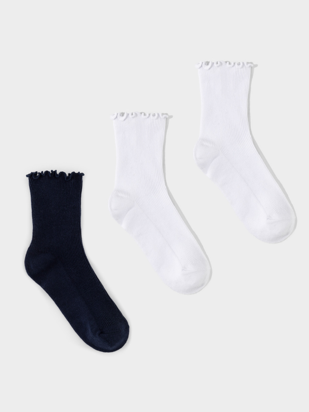 Комплект однотонных длинных носков с рюшей по краю верха для девочки. В комплекте 3 пары.
