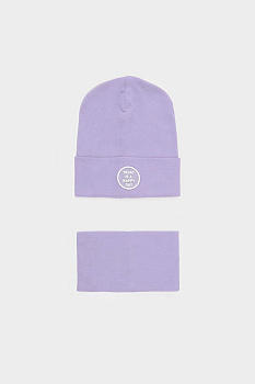 Комплект для девочки: шапка и снуд из хлопкового трикотажа в рубчик с добавлением эластана, окрашенного стойкими гипоаллергенными текстильными красителями. Изделия хорошо тянутся, после многократных стирок сохраняют цвет и форму.