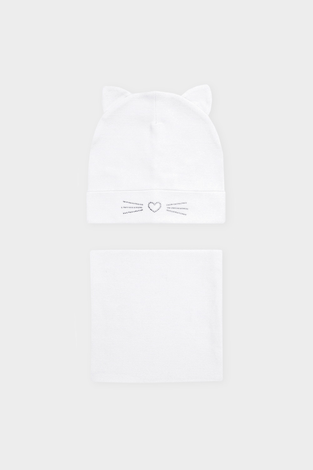Комплект для девочки: шапка и снуд из хлопкового трикотажа с добавлением эластана, окрашенного стойкими гипоаллергенными текстильными красителями. Изделия хорошо тянутся, после многократных стирок сохраняют цвет и форму.