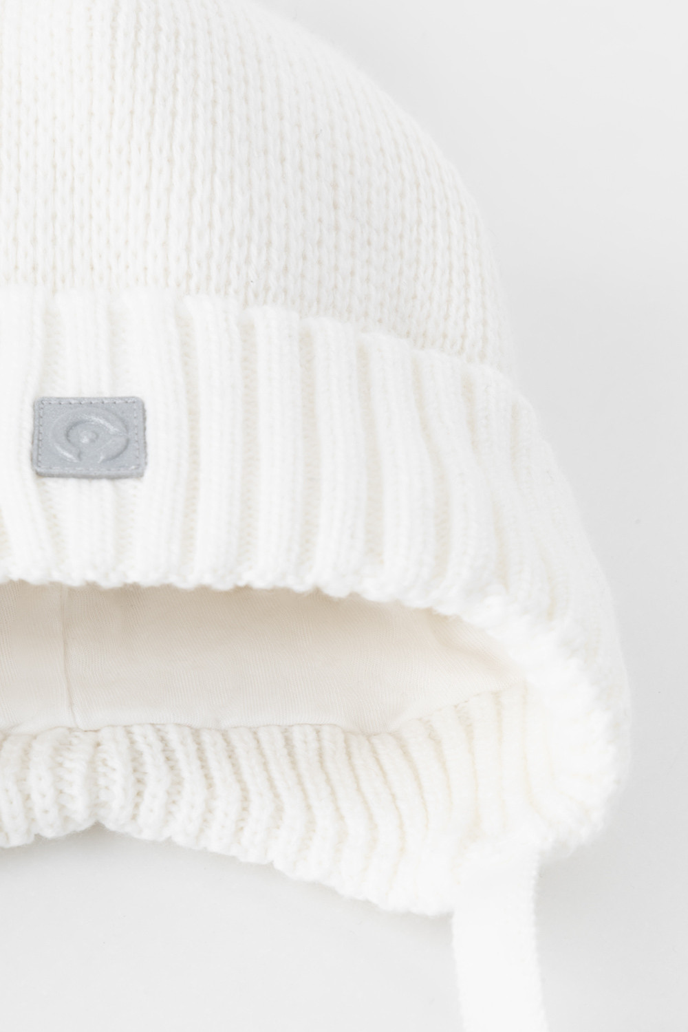 Тёплая зимняя шапка с подкладом из хлопкового трикотажа. Верх выполнен из полушерстяной пряжи. На макушке помпон. Светоотражающая нашивка спереди обеспечивает безопасность в темное время суток.