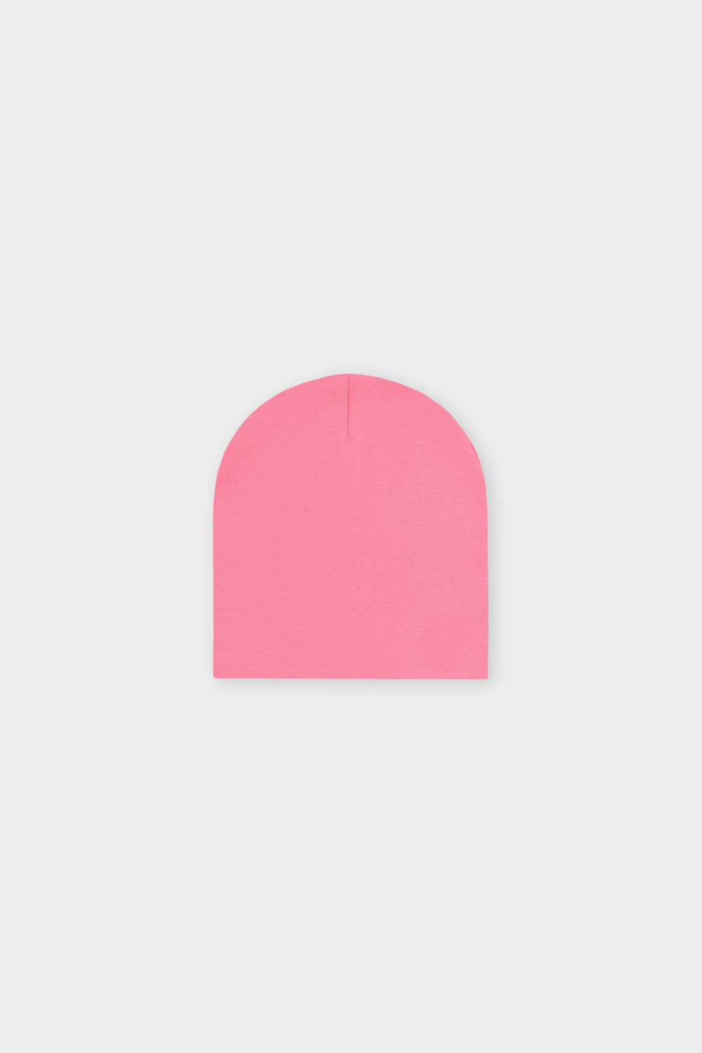 Однотонная трикотажная шапка для девочки из эластичного гребенного хлопка. Изделие сохраняет цвет и форму после многократных стирок.
