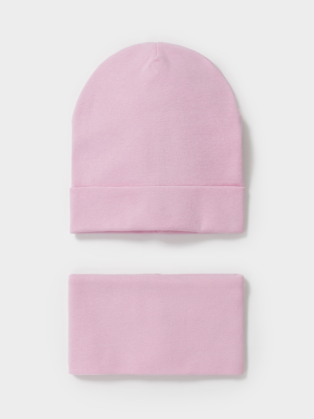 Комплект для девочки: шапка и снуд. Изготовлен из хлопкового трикотажа в рубчик с добавлением спандекса. Комфортно прилегает, обеспечивая защиту от холода и хороший теплообмен.  Изделия хорошо тянутся, после многократных стирок сохраняют цвет и форму.