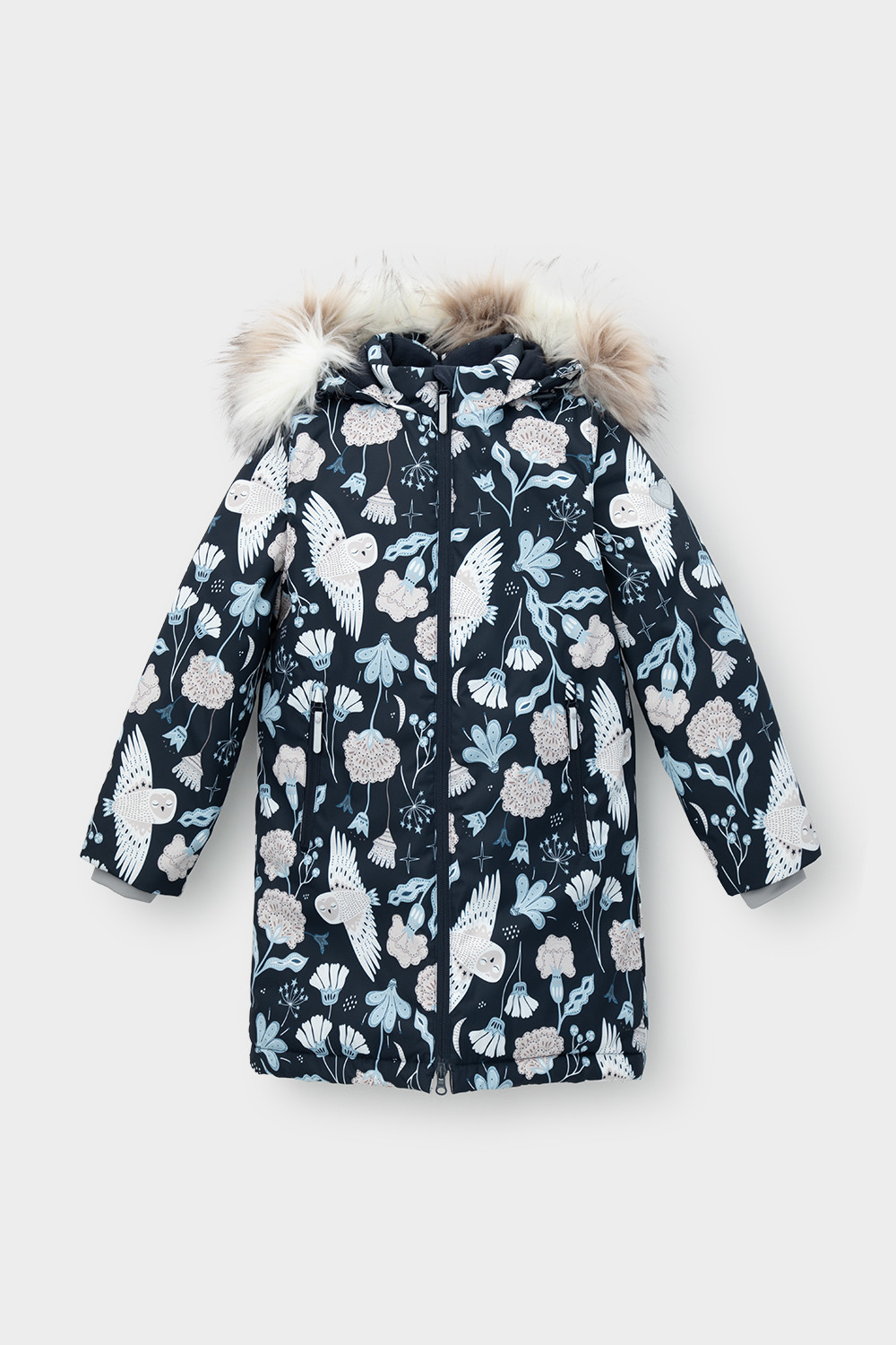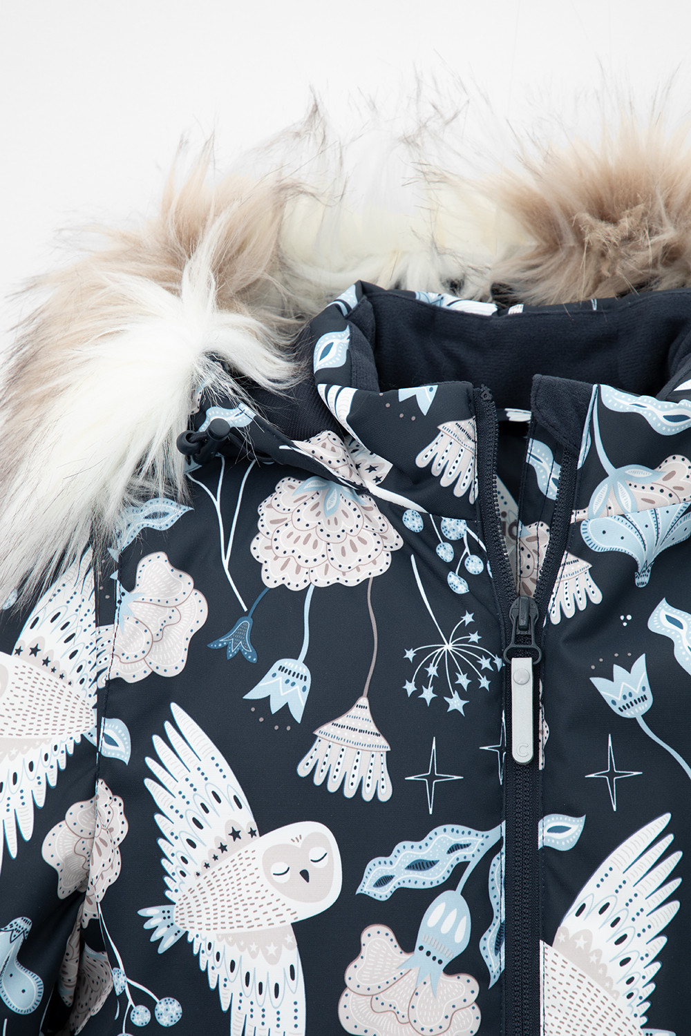 • Несъемный капюшон на липучках с отстегивающимся искусственным мехом и эластичным шнурком.