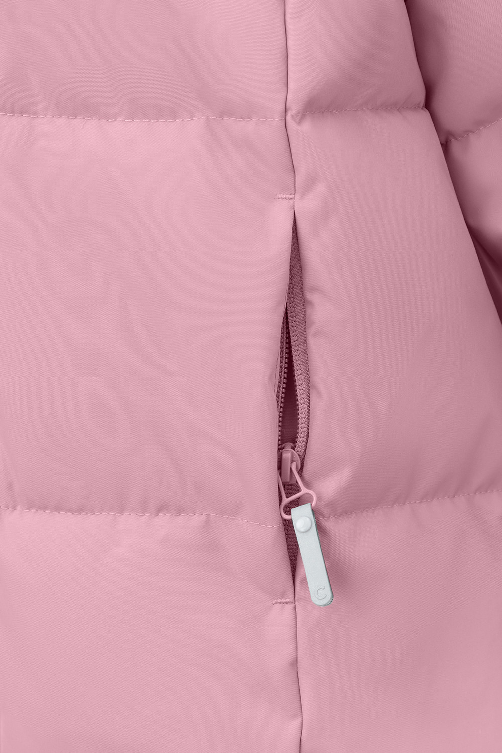Пальто для девочки с натуральным утеплителем из гипоаллергенного гусиного пуха (70%) и пера (30%).