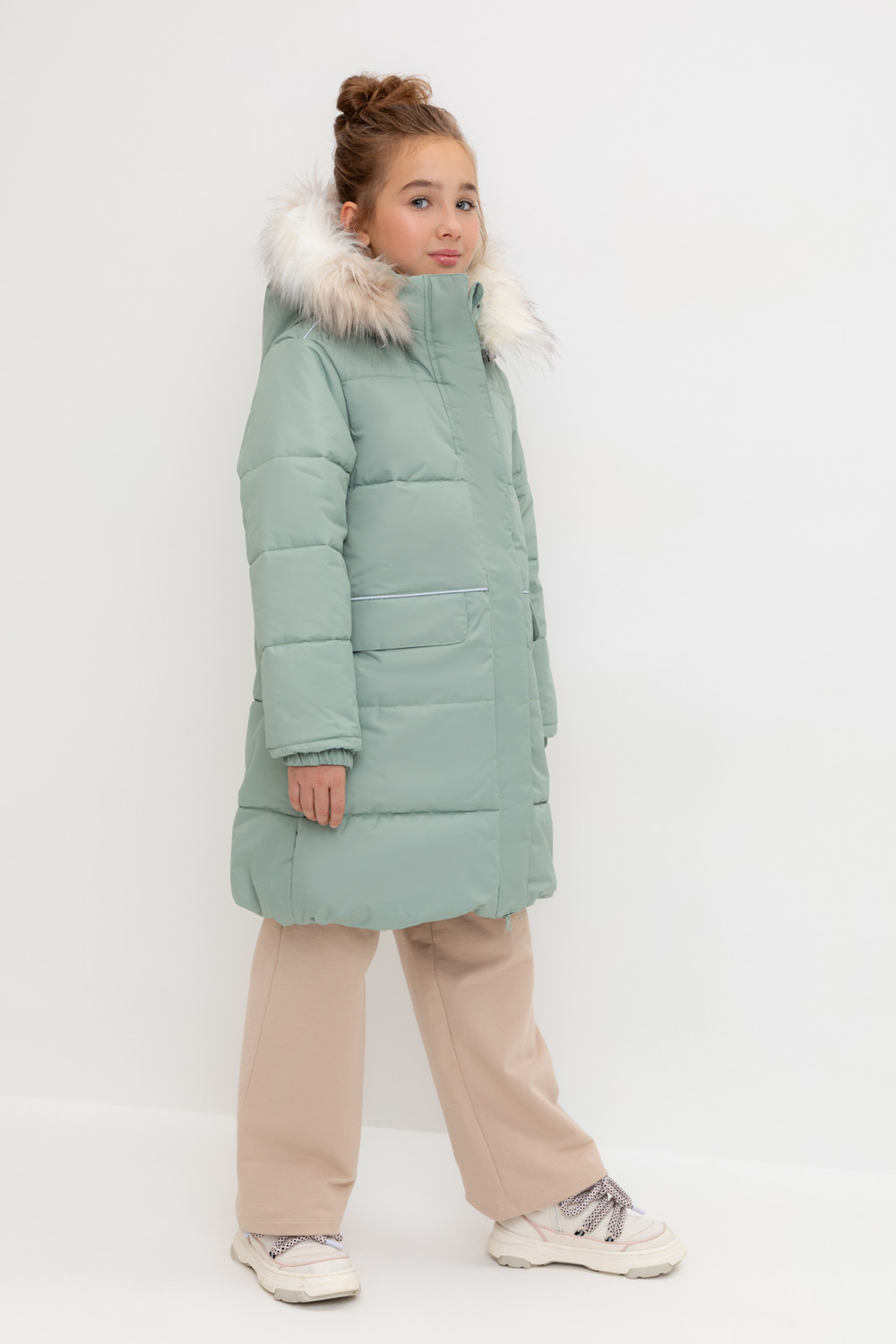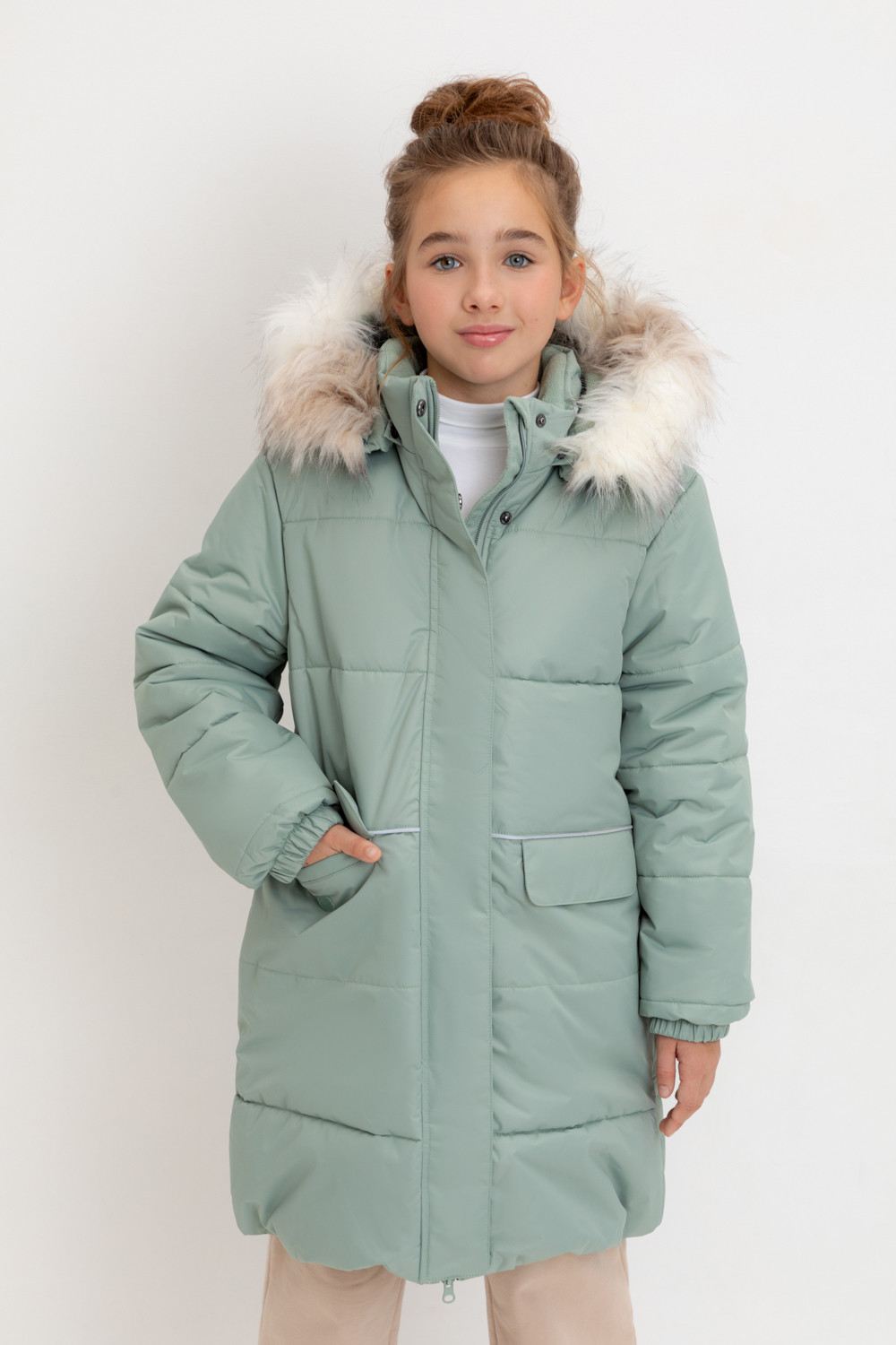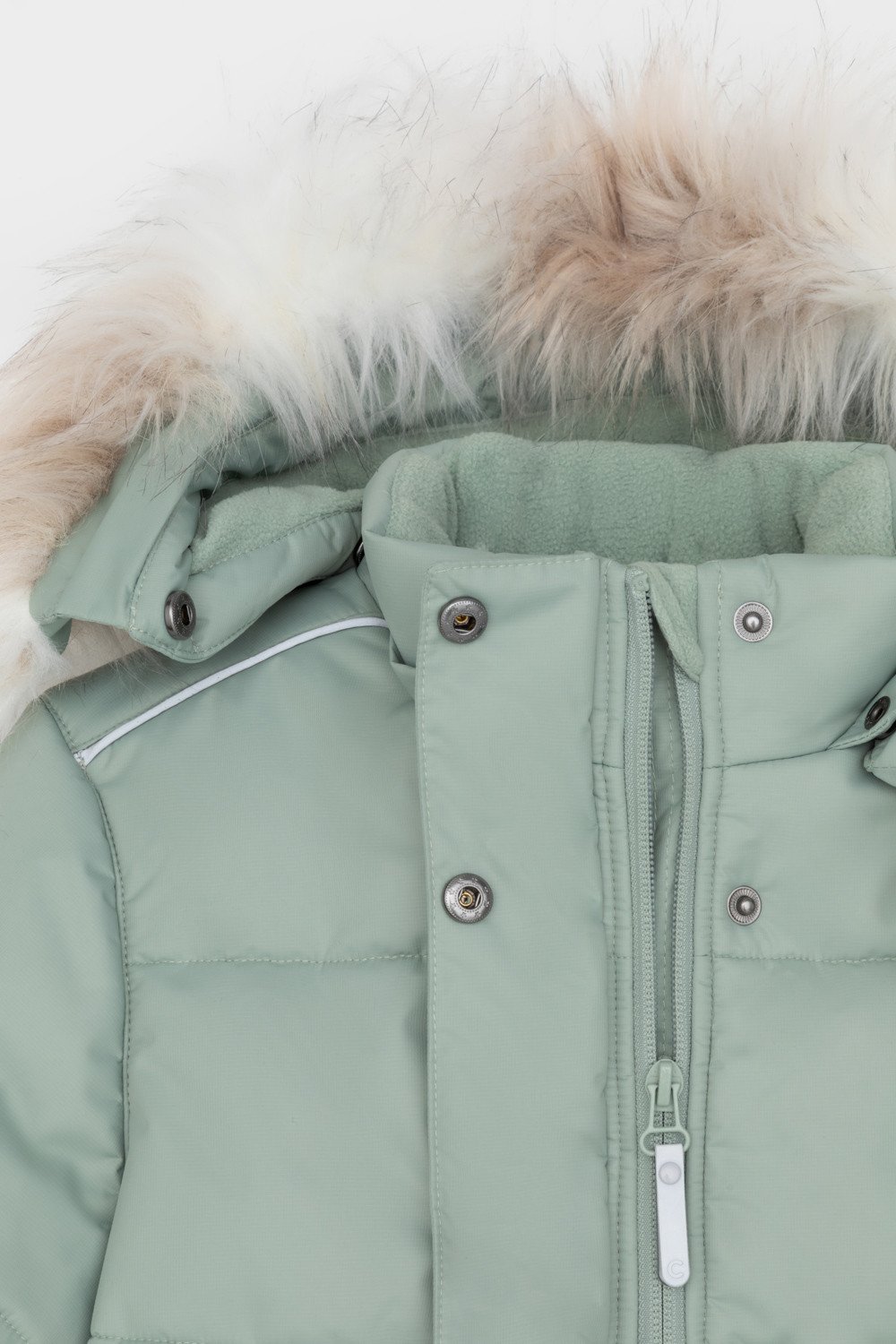 • Отстегивающаяся меховая опушка из искусственного меха на молнии