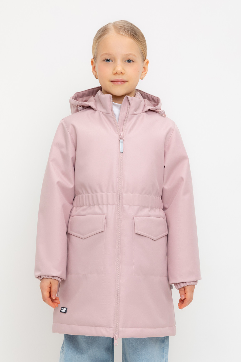 Демисезонное пальто для девочки с утеплителем SEE®: 120 г/м2. Выполнено из мембранной ткани с дополнительной тефлоновой обработкой. Данный вид обработки предохраняет изделие от загрязнения и лучше отводит влагу. Подклад из 100% полиэстера. У изделия предусмотрена защита подбородка. Несъемный капюшон имеет утягивающий шнур со стопперами. Низ рукавов и пояс изделия имеют эластичную резинку для лучшего прилегания. По бокам накладные карманы с клапанами на кнопках. Во всех изделиях верхнего ассортимента для безопасности ребенка предусмотрены светоотражающие элементы.