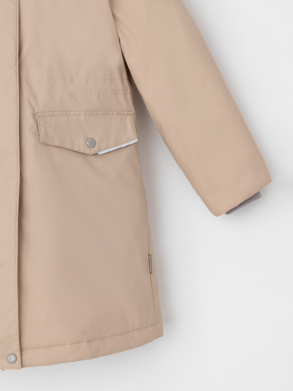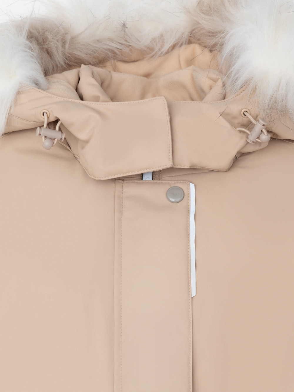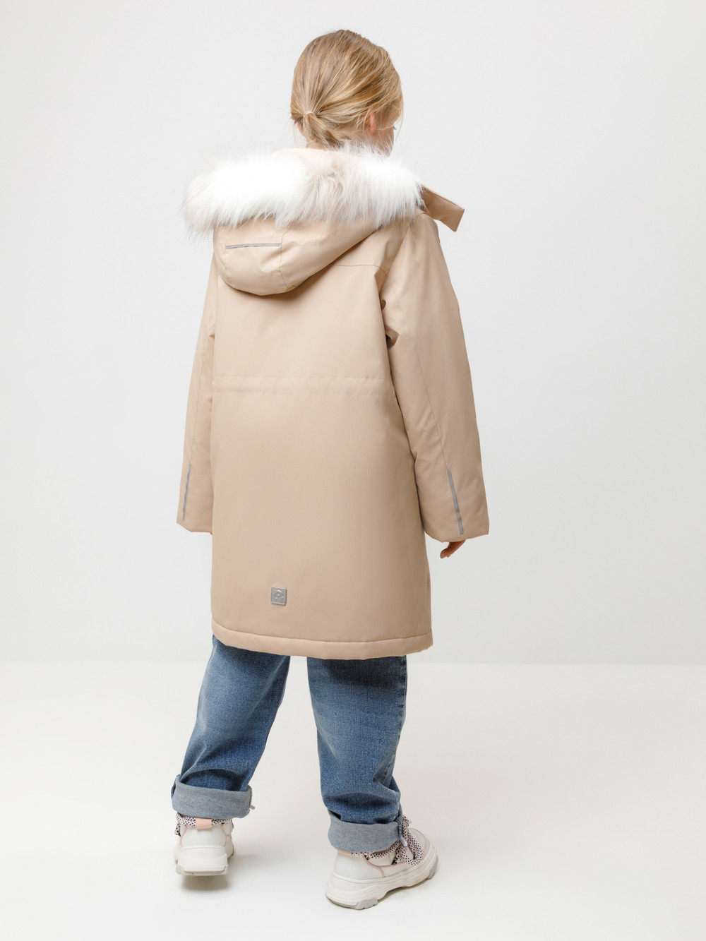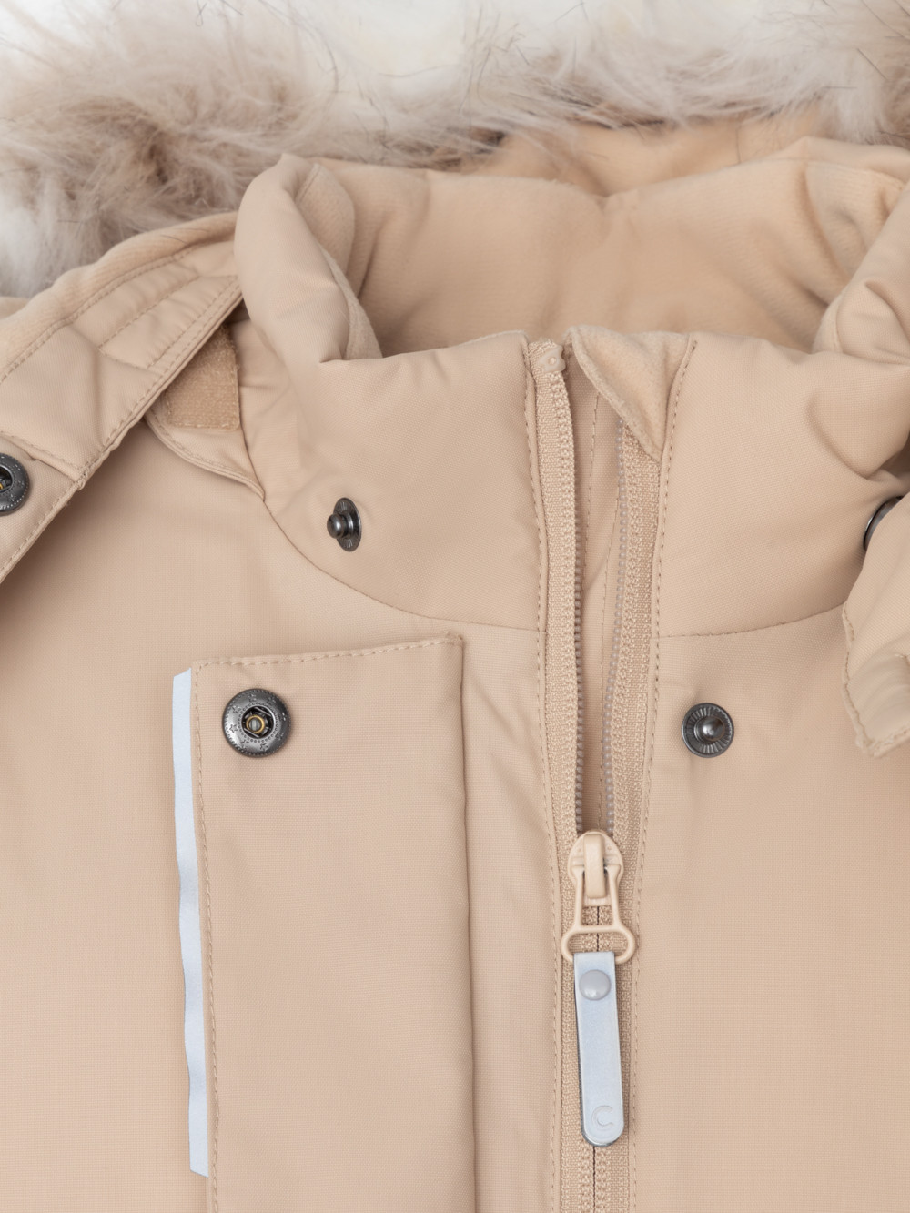 Зимнее пальто для девочки с утеплителем SEE®: 250 г/м2. Выполнено из мембранной ткани с дополнительной тефлоновой обработкой, которая предохраняет изделие от загрязнений и отталкивает влагу. Подклад выполнен из 100% полиэстера Tricot. Пальто застёгивается на молнию, предусмотрена защита подбородка. Съёмный капюшон на кнопках и липучках имеет отстёгивающийся искусственный мех. На рукавах мягкие манжеты. По бокам два кармана с клапанами, внутри карман на молнии. По талии эластичная утяжка со стопперами для регулировки ширины пальто. Во всех изделиях верхнего ассортимента для безопасности ребёнка предусмотрены светоотражающие элементы.