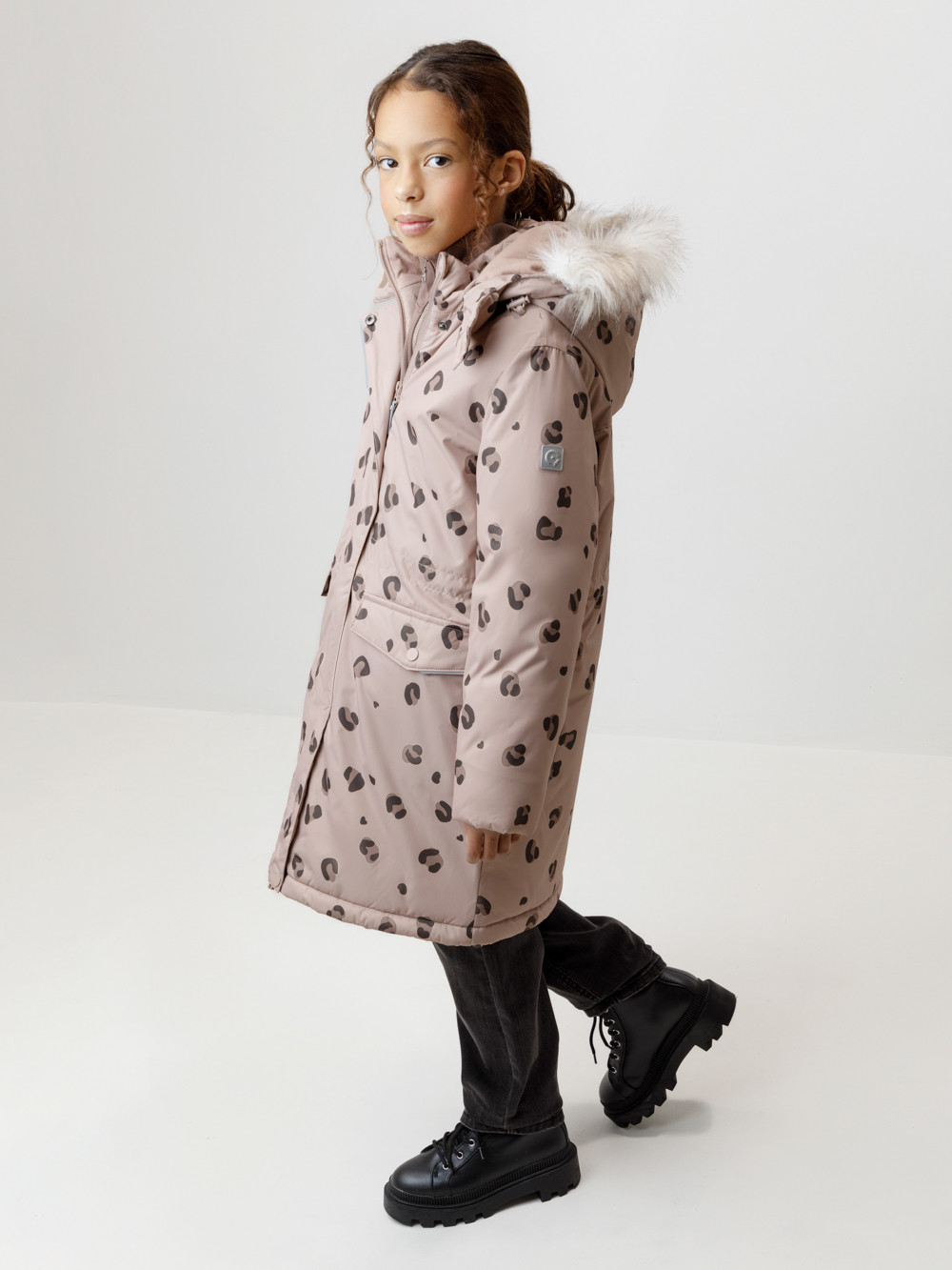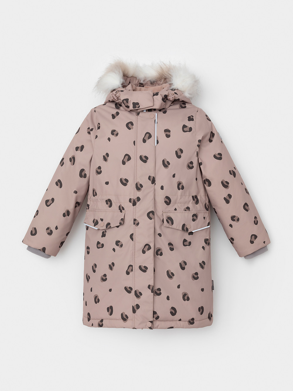 Зимнее пальто для девочки с утеплителем SEE®: 300 г/м2. Выполнено из мембранной ткани с дополнительной тефлоновой обработкой, которая предохраняет изделие от загрязнений и отталкивает влагу. Подклад выполнен из 100% полиэстера Tricot. Пальто застёгивается на молнию, предусмотрена защита подбородка. Съёмный капюшон на кнопках и липучках имеет отстёгивающийся искусственный мех. На рукавах мягкие манжеты. По бокам два кармана с клапанами, внутри карман на молнии. По талии эластичная утяжка со стопперами для регулировки ширины пальто. Во всех изделиях верхнего ассортимента для безопасности ребёнка предусмотрены светоотражающие элементы.