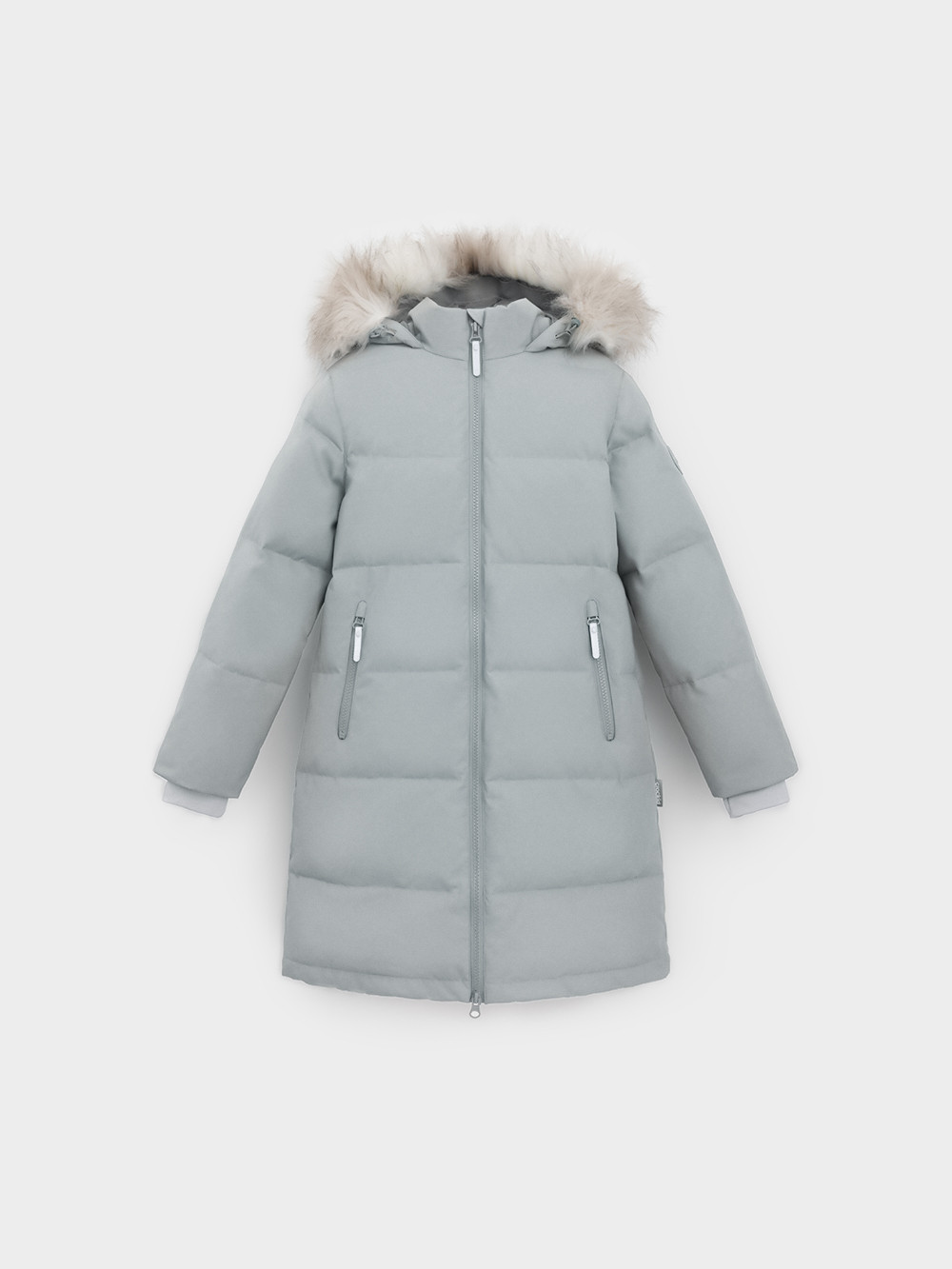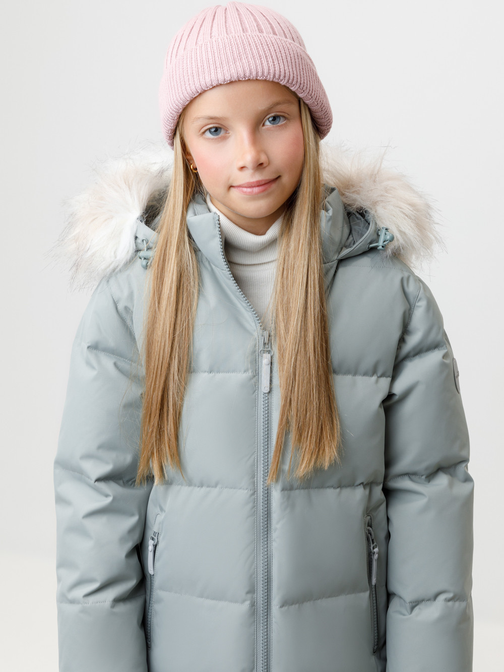 Зимнее пальто для девочки с натуральным утеплителем из гусиного пуха (70%) и пера (30%). Выполнено из мембранной ткани с дополнительной тефлоновой обработкой, которая предохраняет изделие от загрязнений и отталкивает влагу. Подклад выполнен из 100% полиэстера. Пальто застёгивается на молнию, предусмотрена защита подбородка. Несъёмный капюшон имеет эластичные утяжки и отстёгивающийся искусственный мех. По бокам два кармана на молнии. В рукавах мягкие внутренние манжеты. Во всех изделиях верхнего ассортимента для безопасности ребёнка предусмотрены светоотражающие элементы.