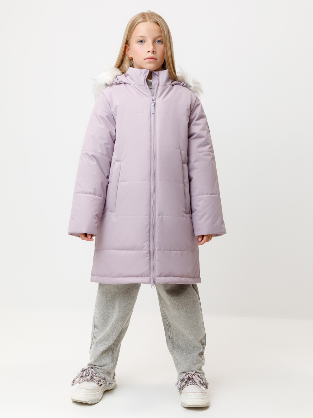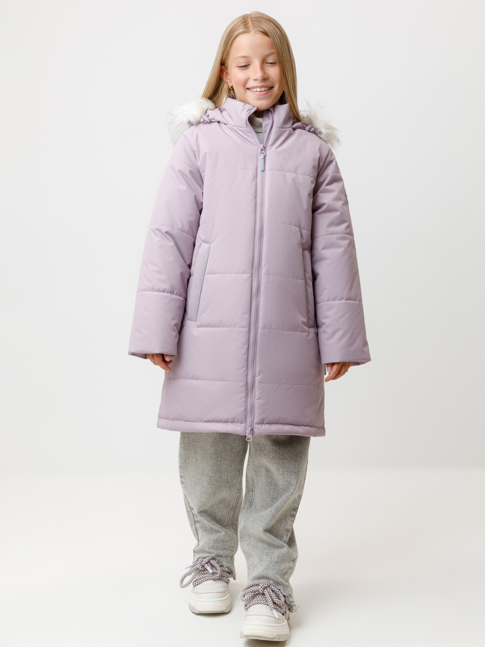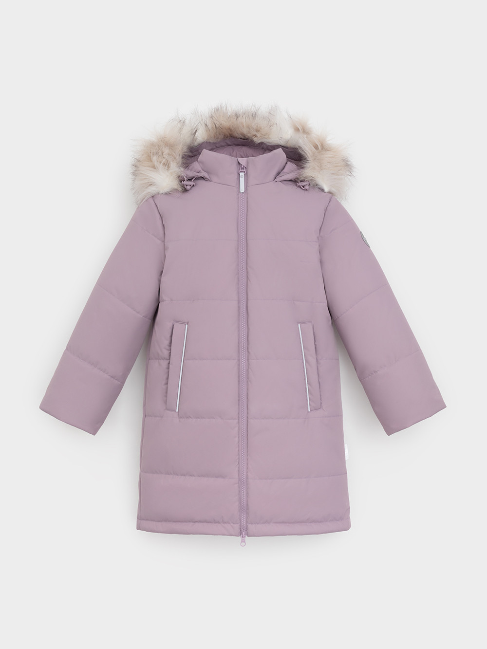 Зимнее пальто для девочки с утеплителем SEE®: 250 г/м2 и с подстёжкой из натурального гусиного пуха (70%) и пера (30%). Выполнено из мембранной ткани с дополнительной тефлоновой обработкой, которая предохраняет изделие от загрязнений и отталкивает влагу. Подклад выполнен из 100% полиэстера. Пальто застёгивается на молнию, предусмотрена защита подбородка. Несъёмный капюшон имеет эластичные утяжки и отстёгивающийся искусственный мех. По бокам два кармана на молнии. В рукавах мягкие внутренние манжеты. Подстёжка присоединяется к внешнему пальто, также возможно носить её отдельно как лёгкий пуховик. Во всех изделиях верхнего ассортимента для безопасности ребёнка предусмотрены светоотражающие элементы.