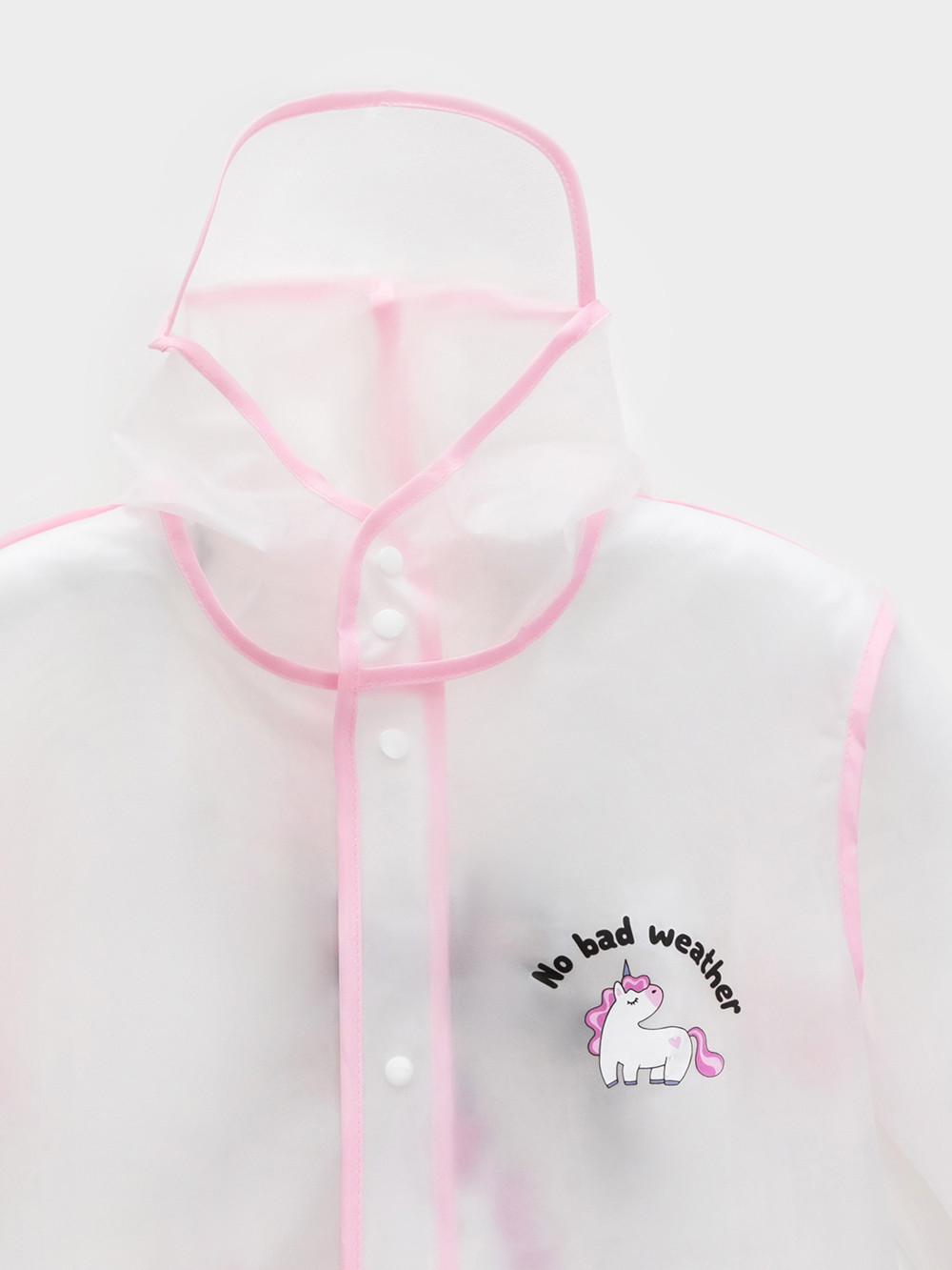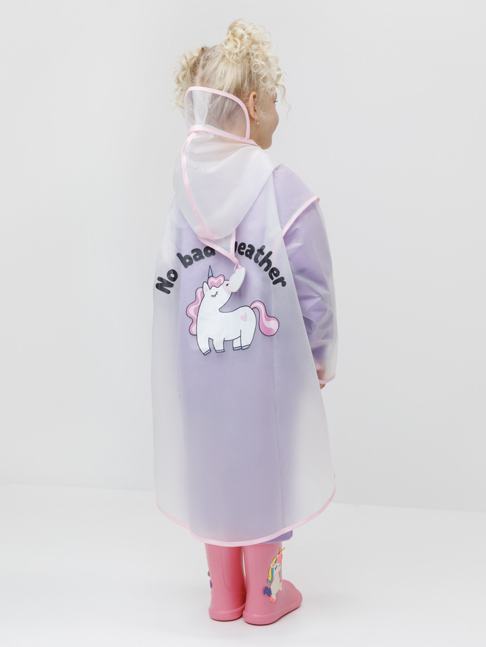 Лёгкий водонепроницаемый дождевик с капюшоном. Выполнен из плотного износостойкого материала ЭВА. В дождливую погоду защищает одежду ребёнка от влаги и грязи, помогая ей оставаться сухой и чистой. Спереди застёгивается на кнопки. Сбоку предусмотрен кармашек для мелочей. Украшен яркой окантовкой и забавным принтом. Свободный крой подходит для детей с разным типом телосложения. Дождевик упакован в удобный мешочек для хранения, поэтому его легко взять с собой на прогулку, в детский сад или в школу.