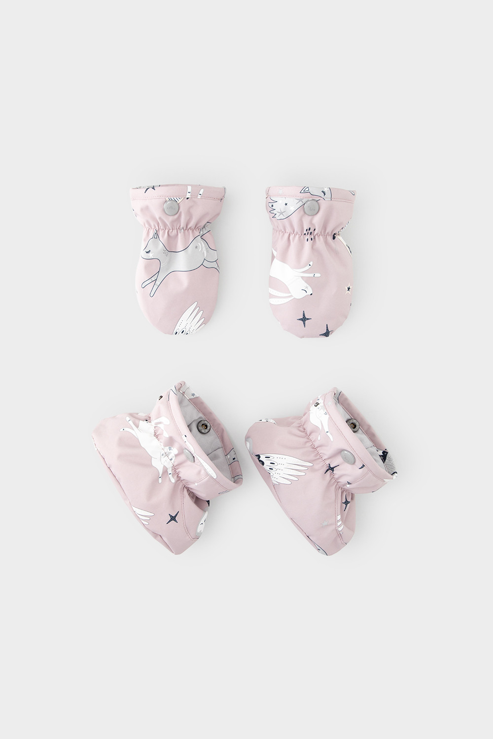 • Дополнительно в размерах 68-74, 74-80, 80-86 пристегивающиеся утепленные варежки и пинетки.