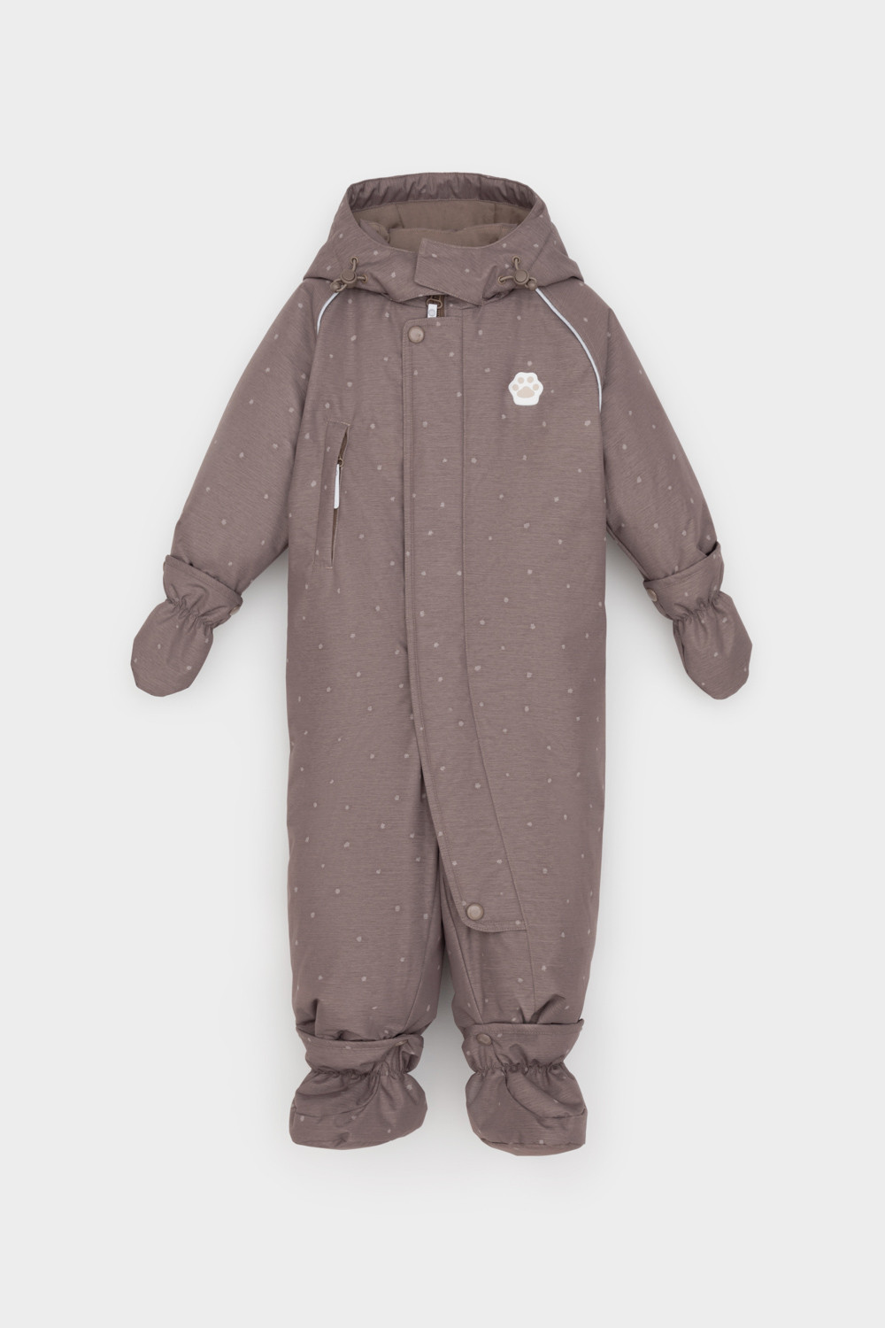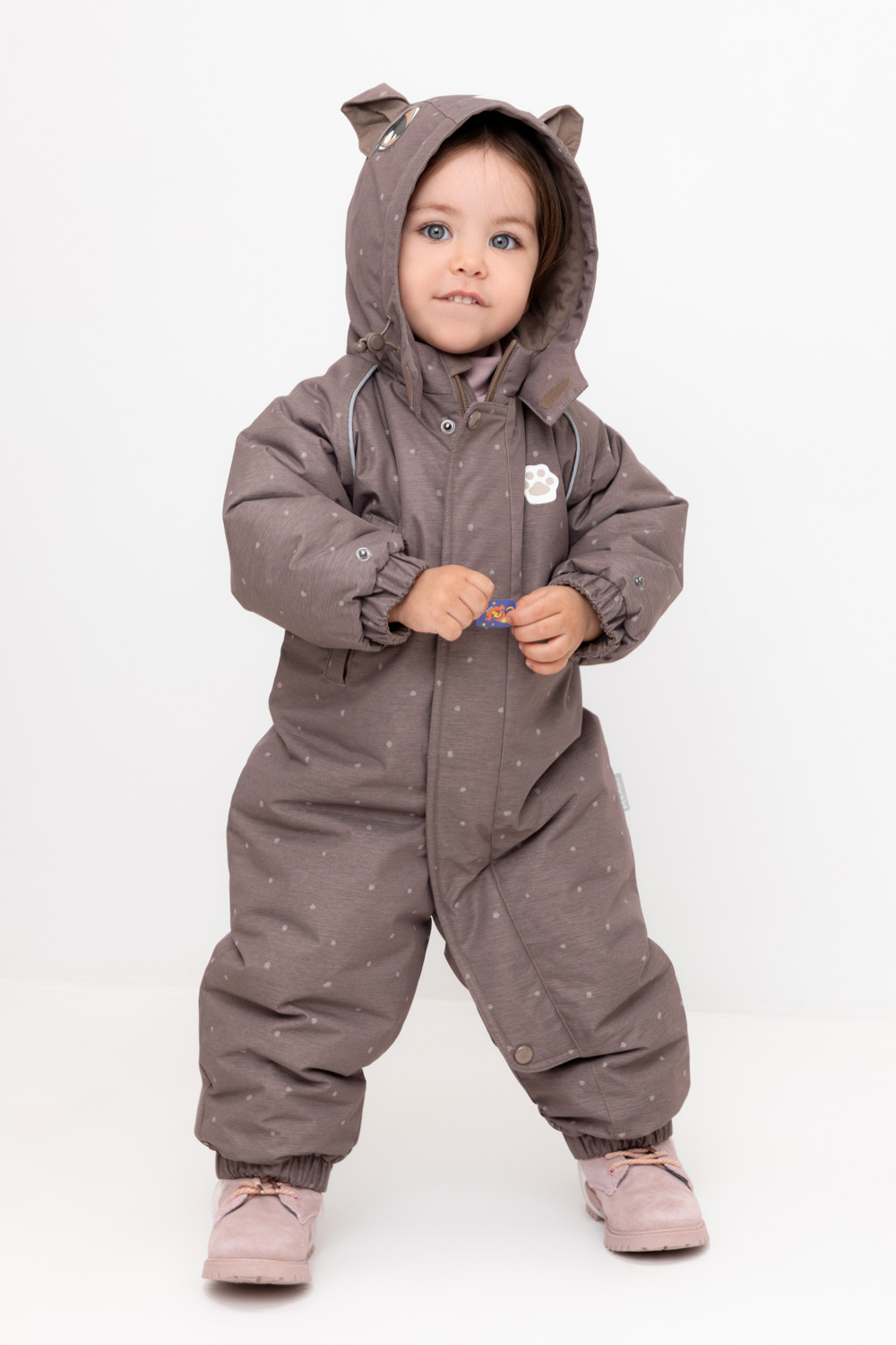 • Дополнительно в размерах 68-74, 74-80, 80-86 пристегивающиеся утепленные варежки и пинетки.