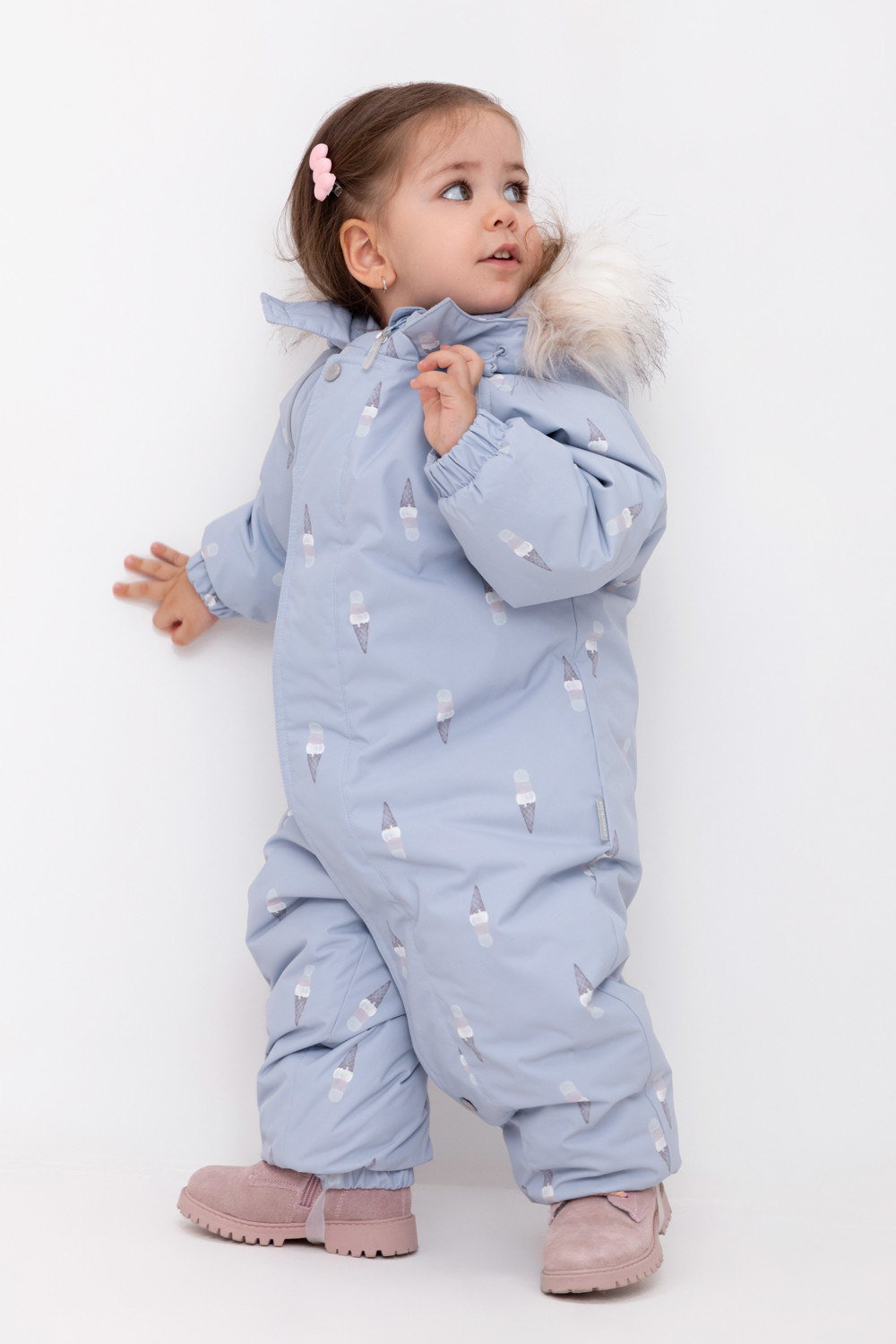 • Дополнительно в размерах 74-80, 80-86  пристегивающиеся утепленные варежки и пинетки.
