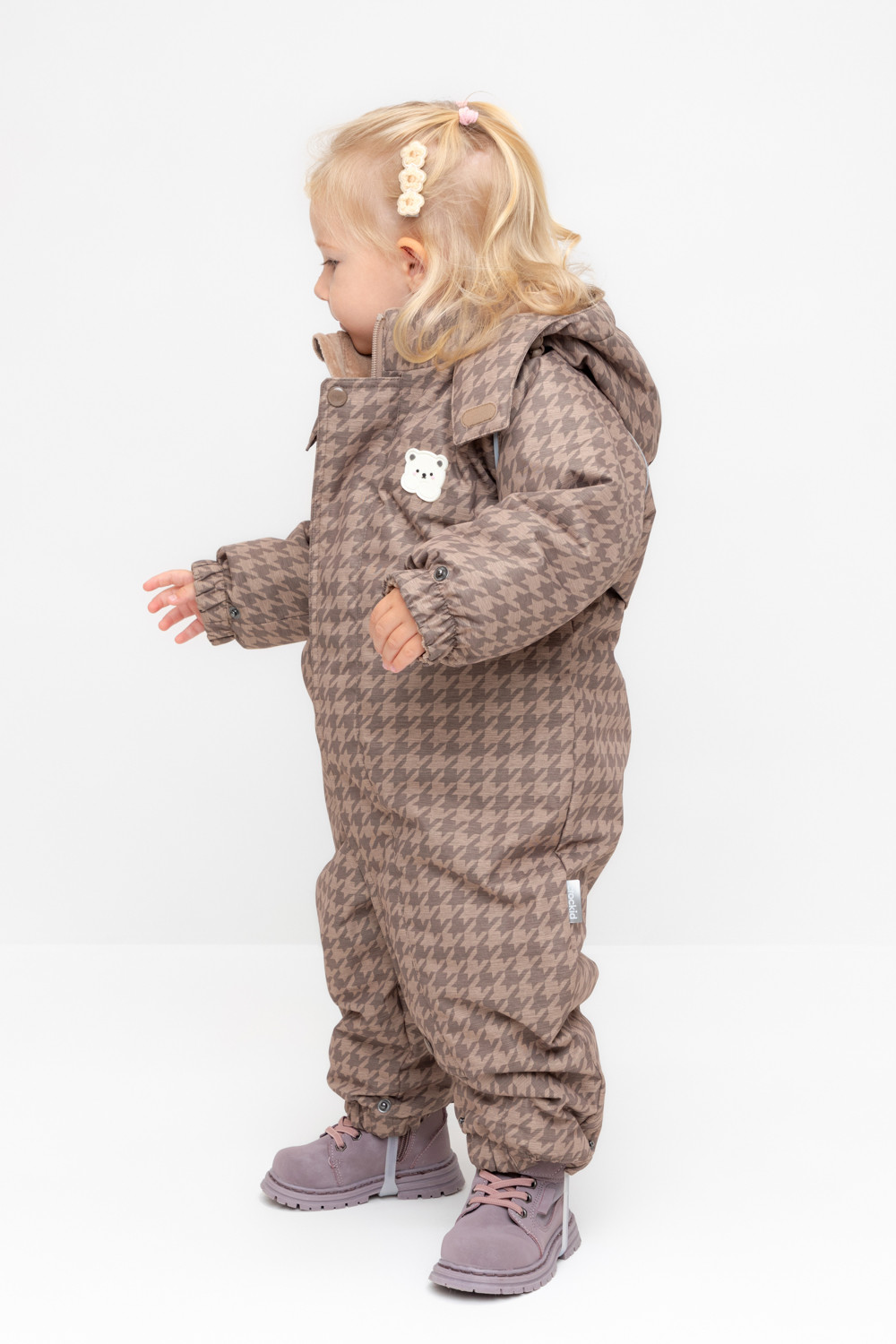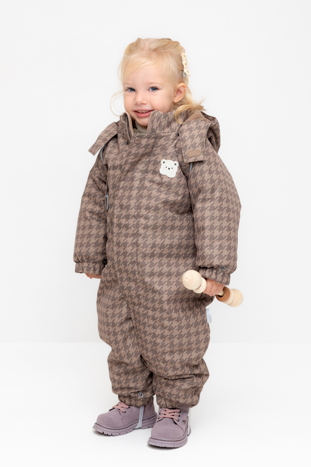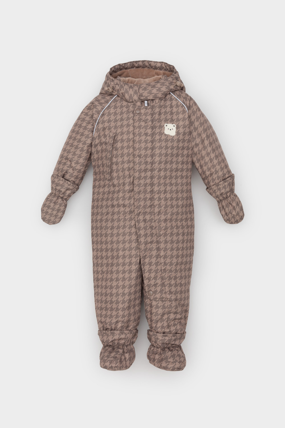 • Дополнительно в размерах 74-80, 80-86 пристегивающиеся утепленные варежки и пинетки.