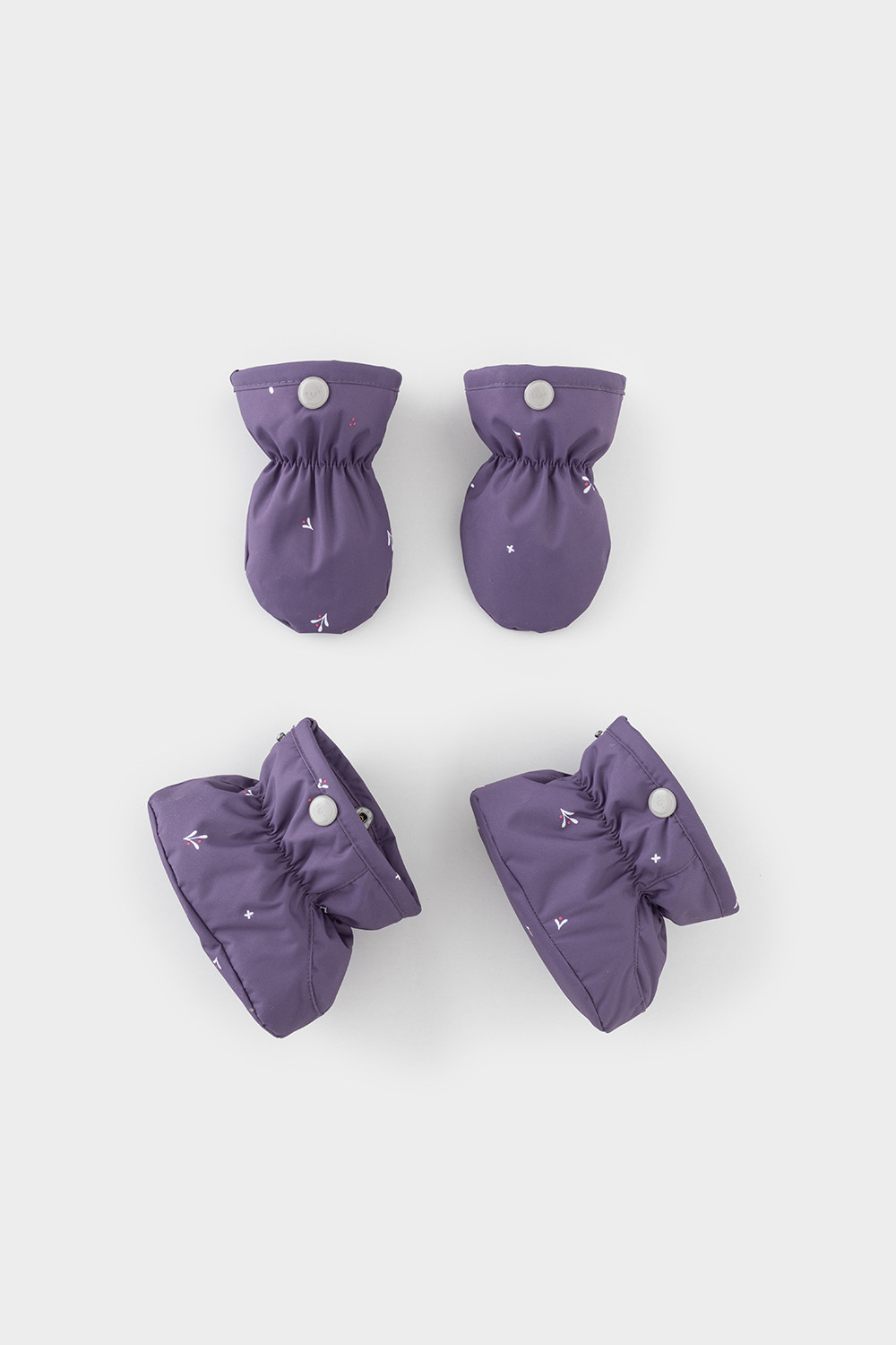 • Дополнительно в размерах 74-80, 80-86 пристегивающиеся утепленные варежки и пинетки.
