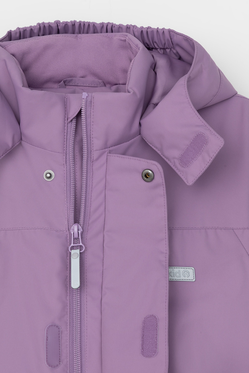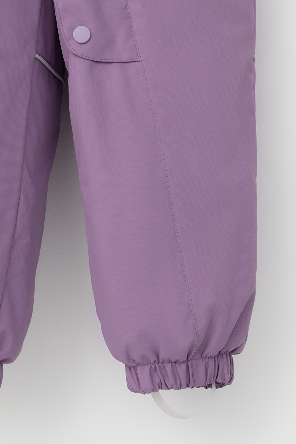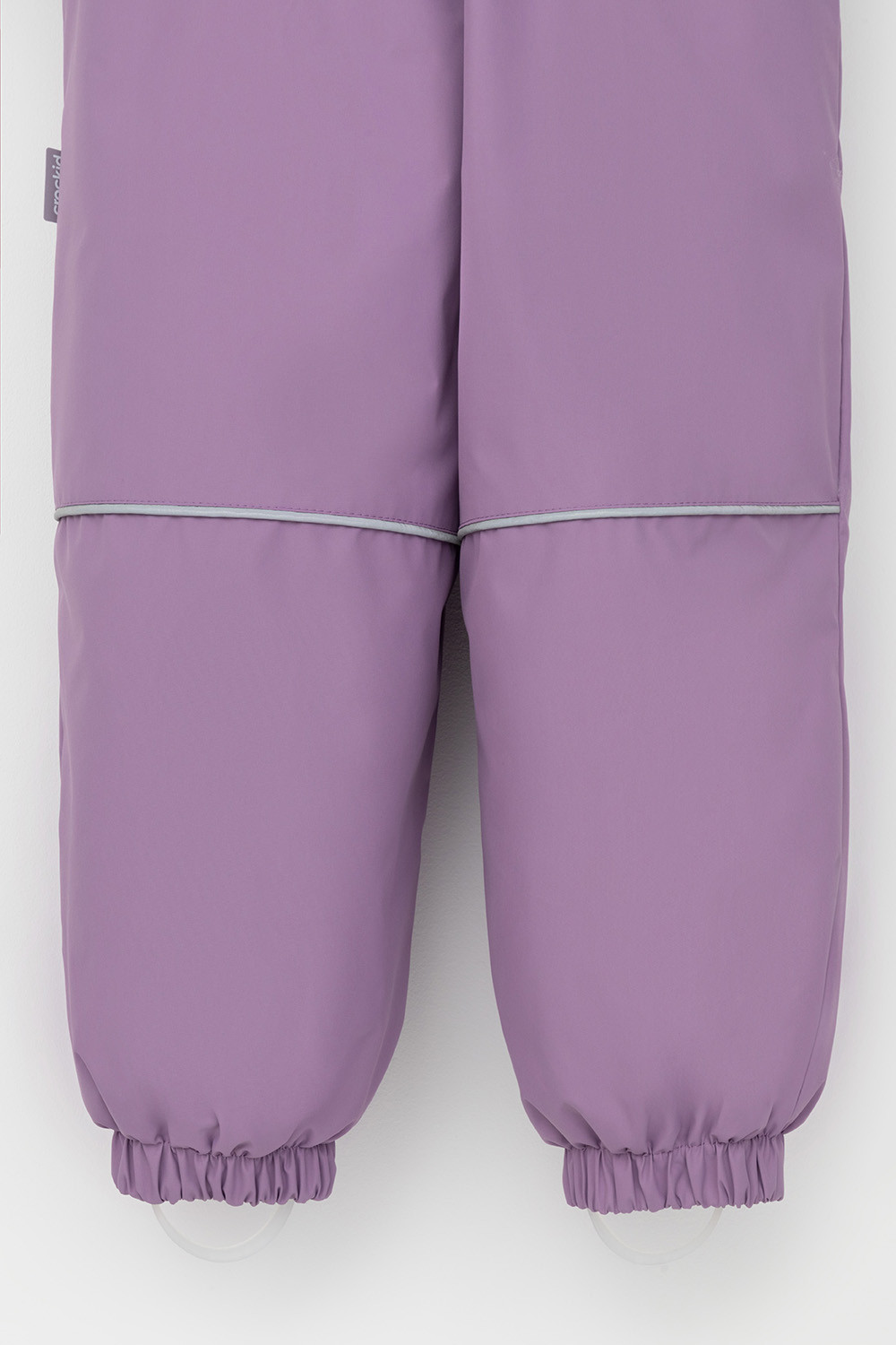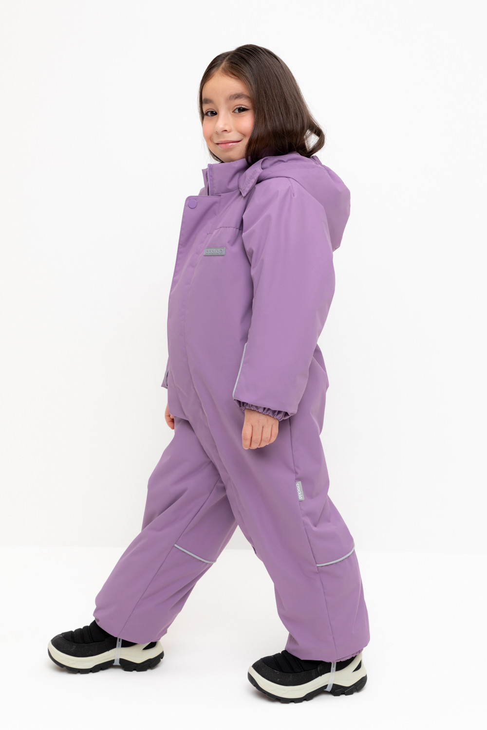 Демисезонный комбинезон для девочки с утеплителем SEE®: 120 г/м2. Выполнен из мембранной ткани с дополнительной тефлоновой обработкой. Данный вид обработки предохраняет изделие от загрязнения и лучше отводит влагу. Подклад из 100% полиэстра. У изделия удлиненная молния для легкого одевания с защитой подбородка. Несъемный капюшон имеет эластичную резинку для лучшего прилегания. По низу рукавов и брючин эластичные манжеты. Функциональный карман с молнией на груди. Для фиксации комбинезона используются съемные силиконовые штрипки. Во всех изделиях верхнего ассортимента для безопасности ребенка предусмотрены светоотражающие элементы.