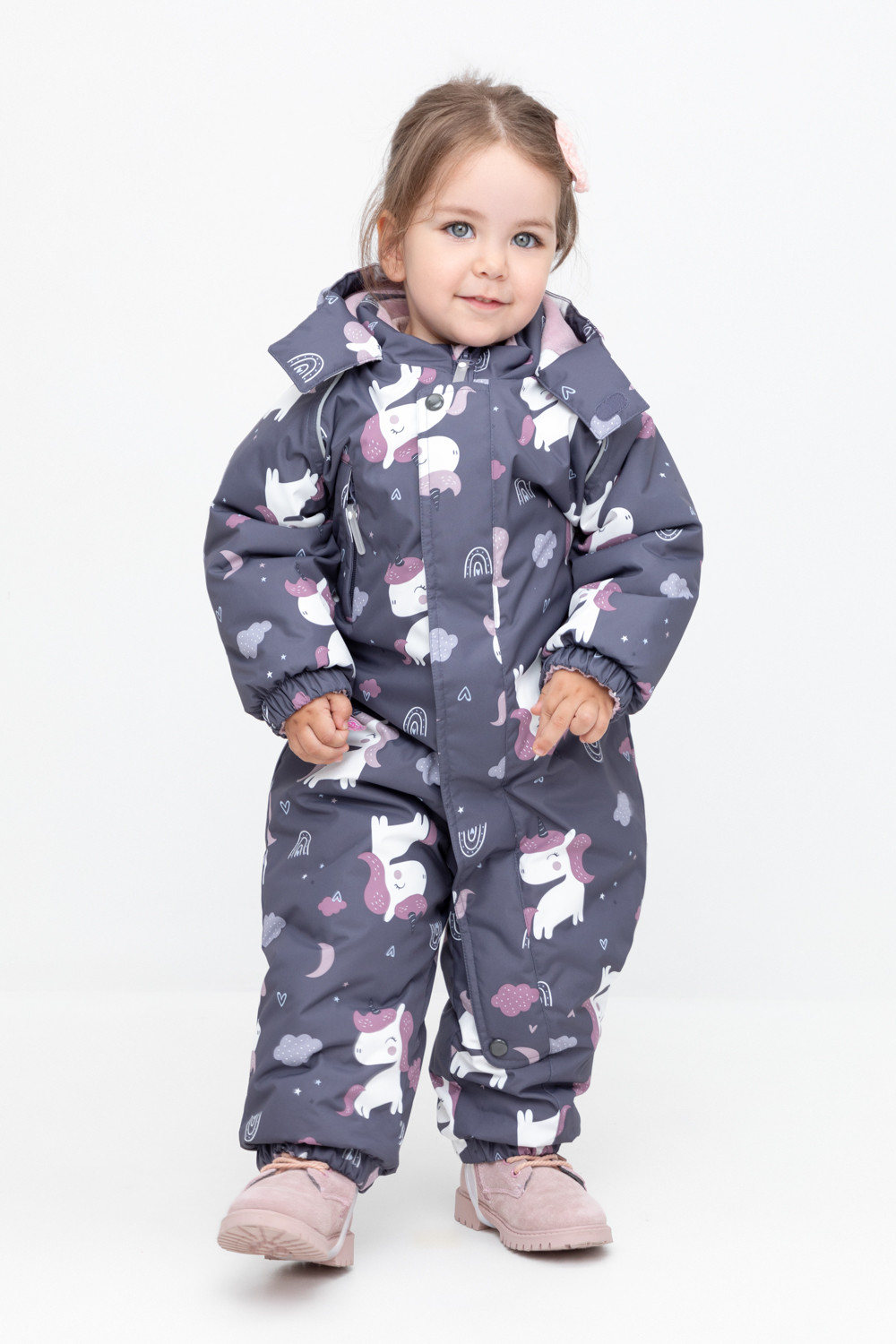 • Дополнительно в размерах 68-74, 74-80, 80-86  пристегивающиеся утепленные варежки и пинетки.