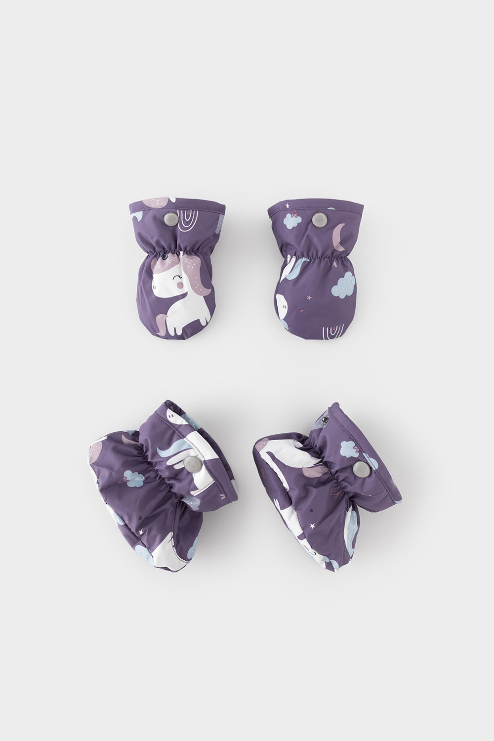 • Дополнительно в размерах 68-74, 74-80, 80-86  пристегивающиеся утепленные варежки и пинетки.