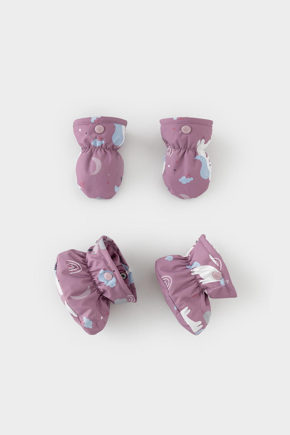 • Дополнительно в размерах 68-74, 74-80, 80-86  пристегивающиеся утепленные варежки и пинетки.