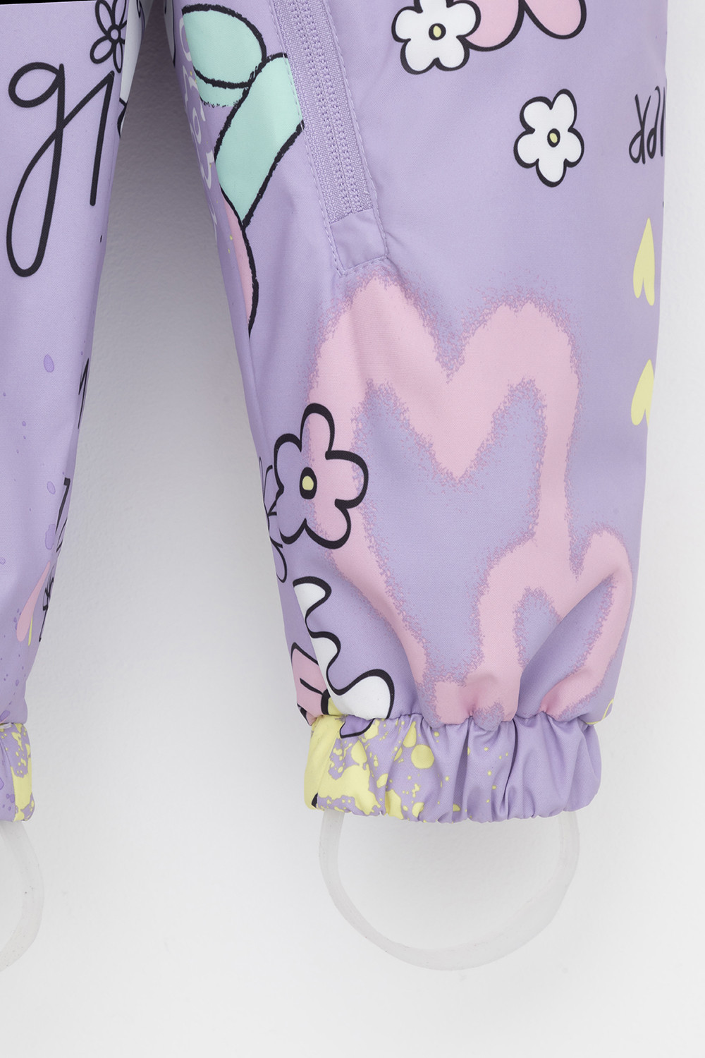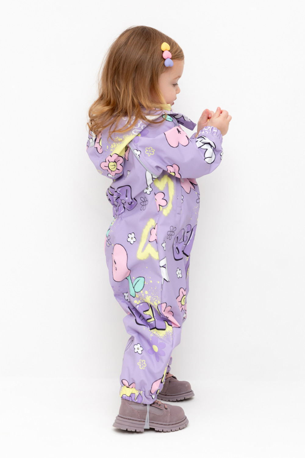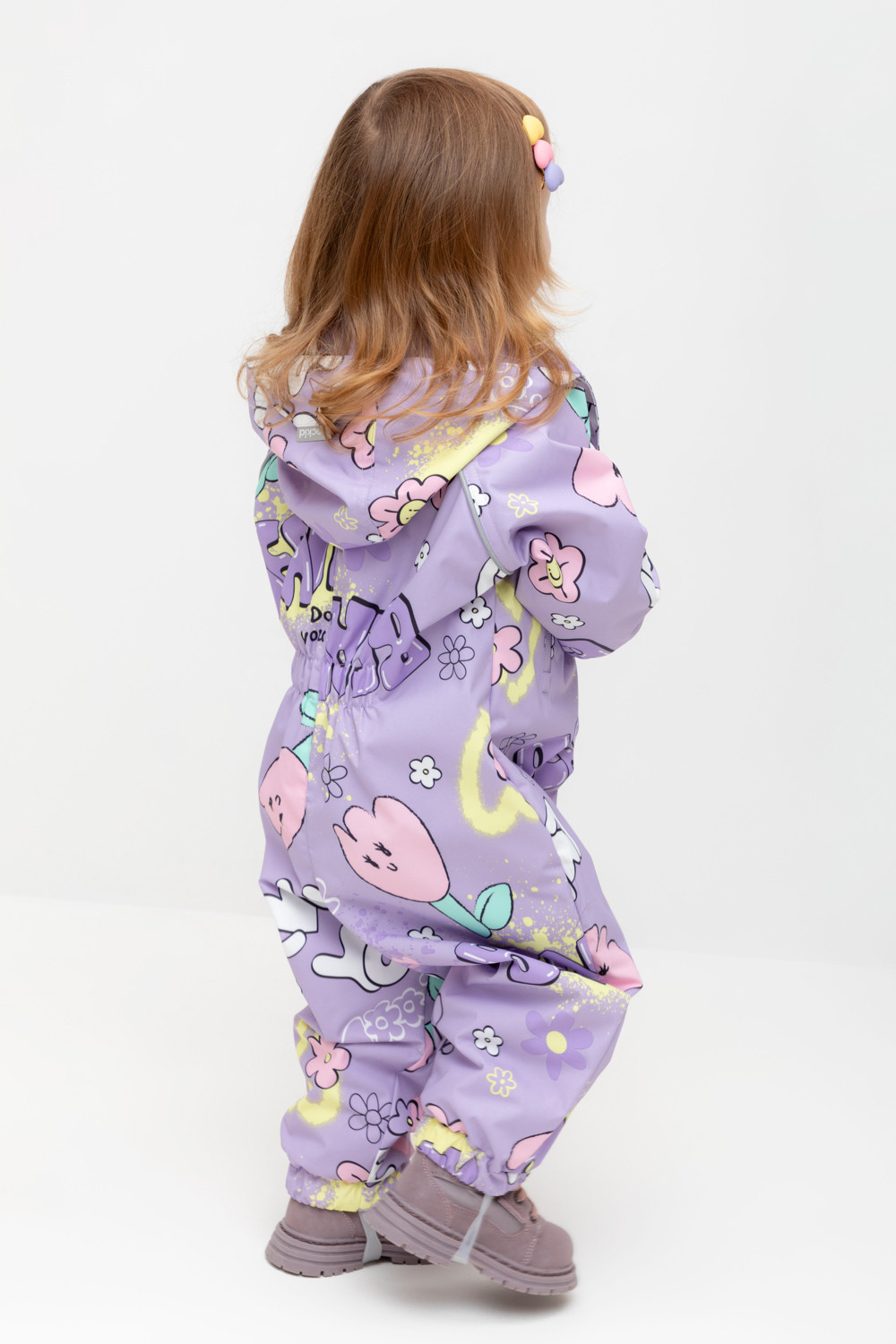 Ветровочный комбинезон ясельный из мембранной ткани с дополнительной тефлоновой обработкой. Данный вид обработки предохраняет изделие от загрязнения и лучше отводит влагу. Подклад из 100% хлопка. У изделия удлиненная молния для легкого одевания с защитой подбородка. Утяжка на капюшоне с потайными стопперами. По низу рукавов и брючин, а также на спинке изделия эластичная резинка для лучшего прилегания. Для фиксации комбинезона используются съемные силиконовые штрипки. В размерах 68-80 функциональные отвороты на рукавах и брючинах. Во всех изделиях верхнего ассортимента для безопасности ребенка предусмотрены светоотражающие элементы.
