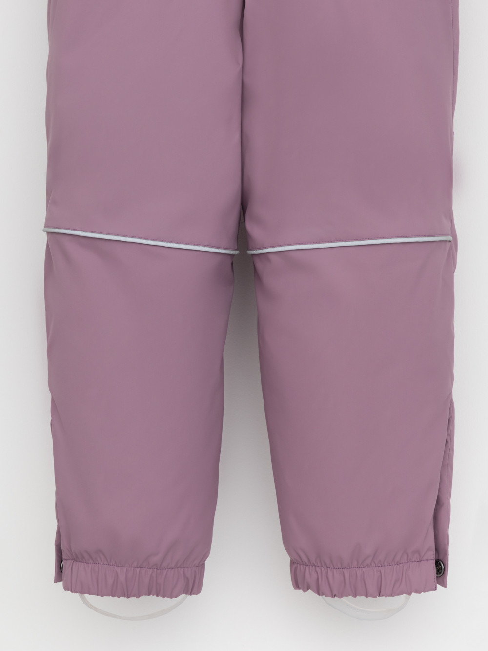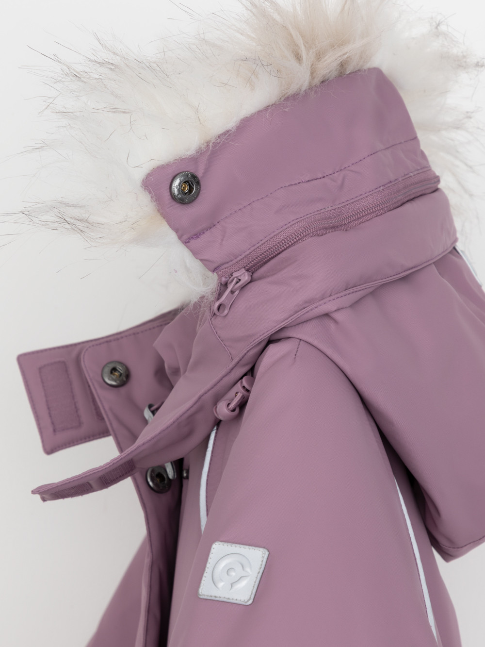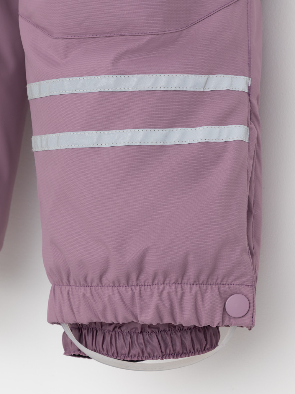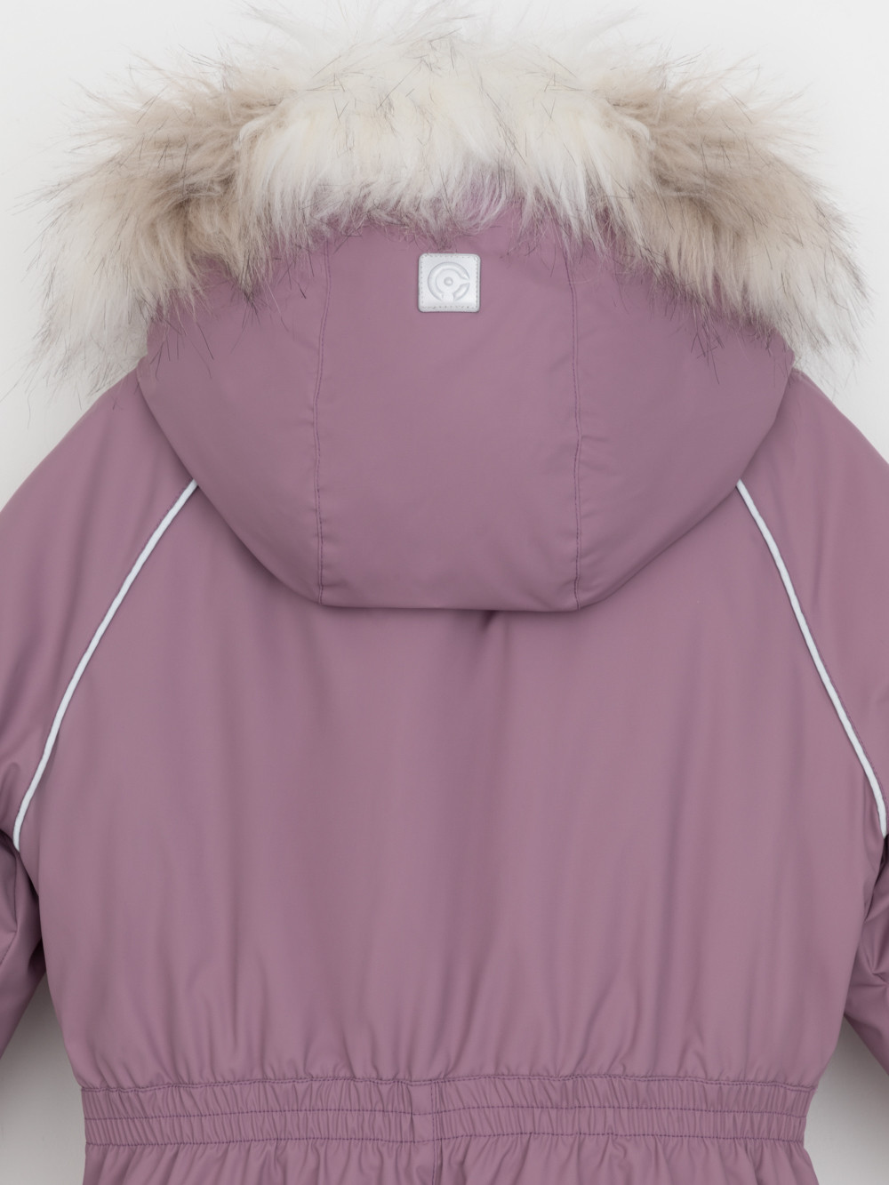 Зимний комбинезон для девочки с утеплителем Fellex®: 250 г/м2 . Выполнен из мембранной ткани с дополнительной тефлоновой обработкой, которая предохраняет изделие от загрязнений и отталкивает влагу. Подклад выполнен из 100% полиэстера Tricot. Комбинезон застёгивается на молнию и внешнюю планку на липучках и кнопках, предусмотрена защита подбородка. Съёмный капюшон имеет эластичную утяжку со стопперами и отстёгивающийся мех на молнии. Резинка по спинке обеспечивает лучшее прилегание. По бокам два кармана на молнии. Эластичные манжеты на рукавах  регулируются по ширине с помощью липучки, по низу изделия - с помощью кнопки. Внутренняя противоснежная юбка  защищает обувь от попадания снега и удерживает комбинезон в закреплённом положении. В размерах с 98-104 по 116-122  предусмотрены отстёгивающиеся штрипки. Во всех изделиях верхнего ассортимента для безопасности ребёнка предусмотрены светоотражающие элементы.