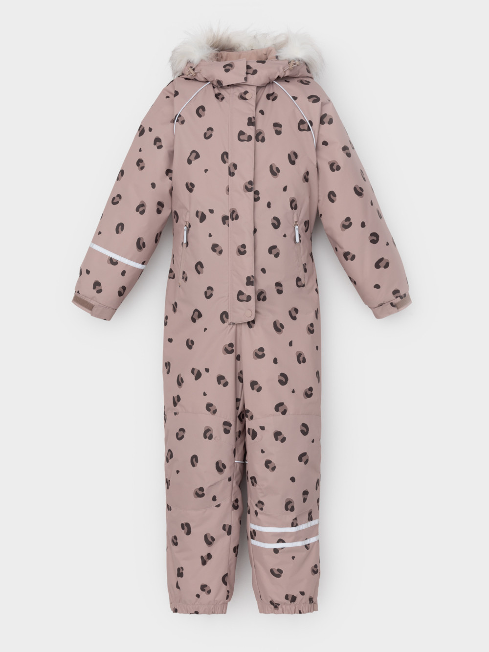 Зимний комбинезон для девочки с утеплителем Fellex®: 250 г/м2 . Выполнен из мембранной ткани с дополнительной тефлоновой обработкой, которая предохраняет изделие от загрязнений и отталкивает влагу. Подклад выполнен из 100% полиэстера Tricot. Комбинезон застёгивается на молнию и внешнюю планку на липучках и кнопках, предусмотрена защита подбородка. Съёмный капюшон имеет эластичную утяжку со стопперами и отстёгивающийся искусственный мех. Резинка по спинке обеспечивает лучшее прилегание. По бокам два кармана на молнии. Эластичные манжеты на рукавах  регулируются по ширине с помощью липучки, по низу изделия - с помощью кнопки. Внутренняя противоснежная юбка защищает обувь от попадания снега и удерживает комбинезон в закреплённом положении, предусмотрены отстёгивающиеся штрипки. Во всех изделиях верхнего ассортимента для безопасности ребёнка предусмотрены светоотражающие элементы.