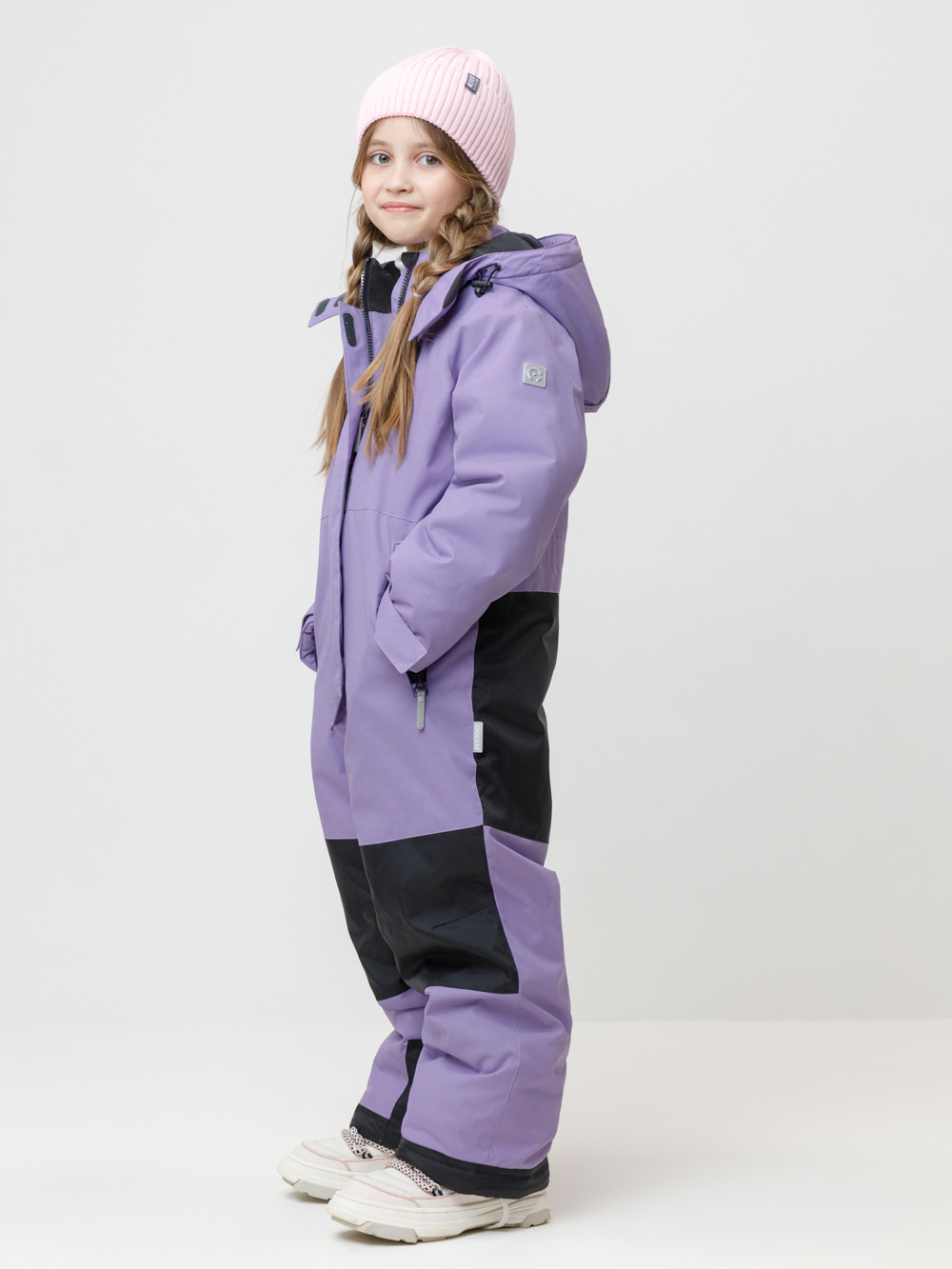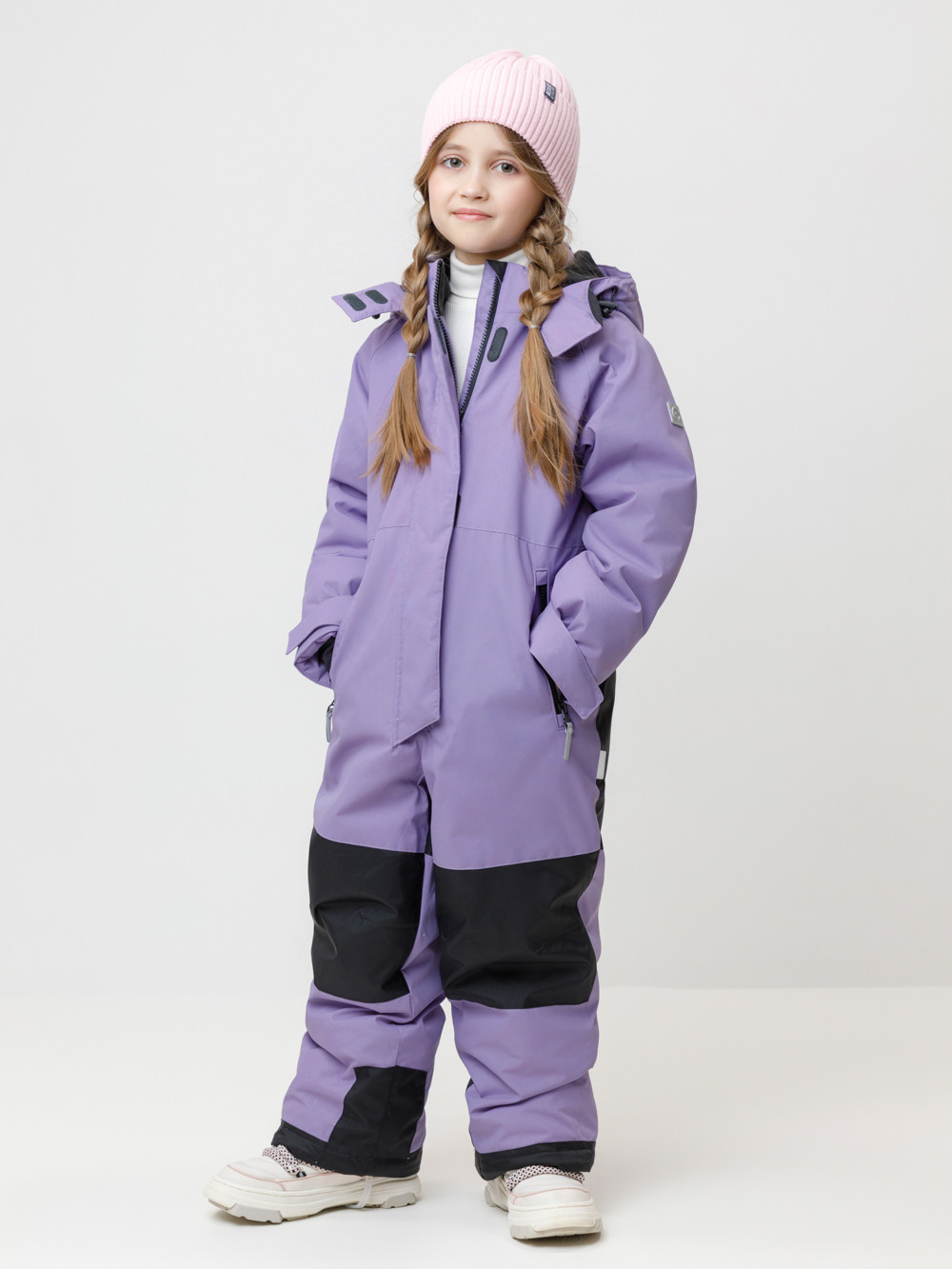 Зимний комбинезон для девочки с утеплителем SEE®: 250 г/м2 . Выполнен из мембранной ткани с дополнительной тефлоновой обработкой, которая предохраняет изделие от загрязнений и отталкивает влагу. Подклад выполнен из 100% полиэстера Tricot. Комбинезон застёгивается на молнию и внешнюю планку на липучках и кнопках, предусмотрена защита подбородка. Съёмный капюшон имеет эластичную утяжку со стопперами. Резинка по спинке обеспечивает лучшее прилегание. По бокам два кармана на молнии. Внутренние мягкие манжеты в рукавах. Рукава регулируются по ширине с помощью липучки. Внутренняя противоснежная юбка защищает обувь от попадания снега и удерживает комбинезон в закреплённом положении, предусмотрены отстёгивающиеся штрипки до размера 116-122 включительно. Во всех изделиях верхнего ассортимента для безопасности ребёнка предусмотрены светоотражающие элементы.