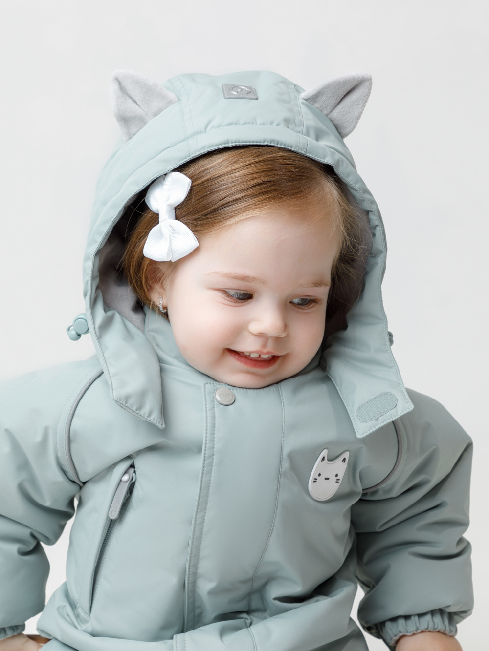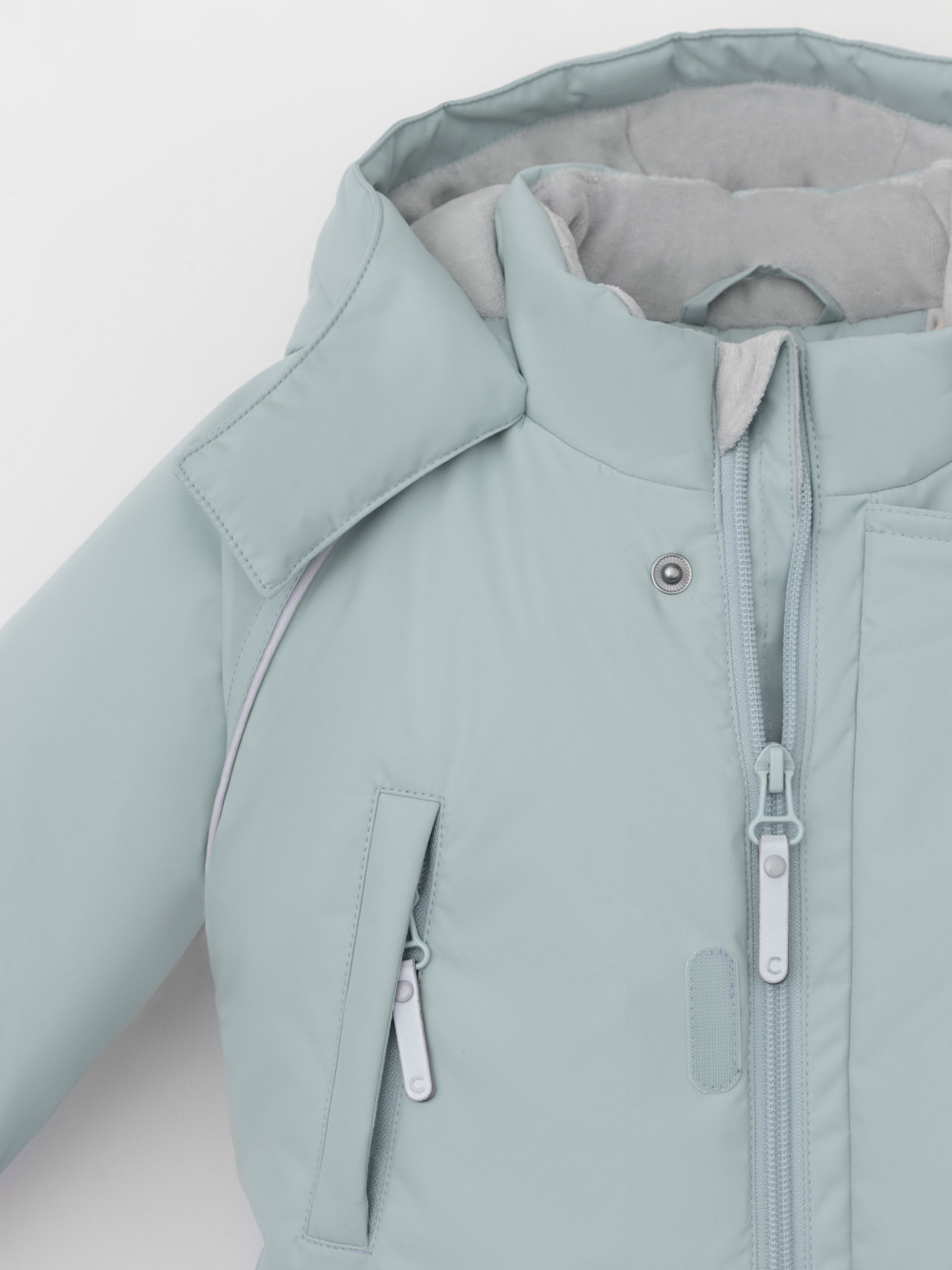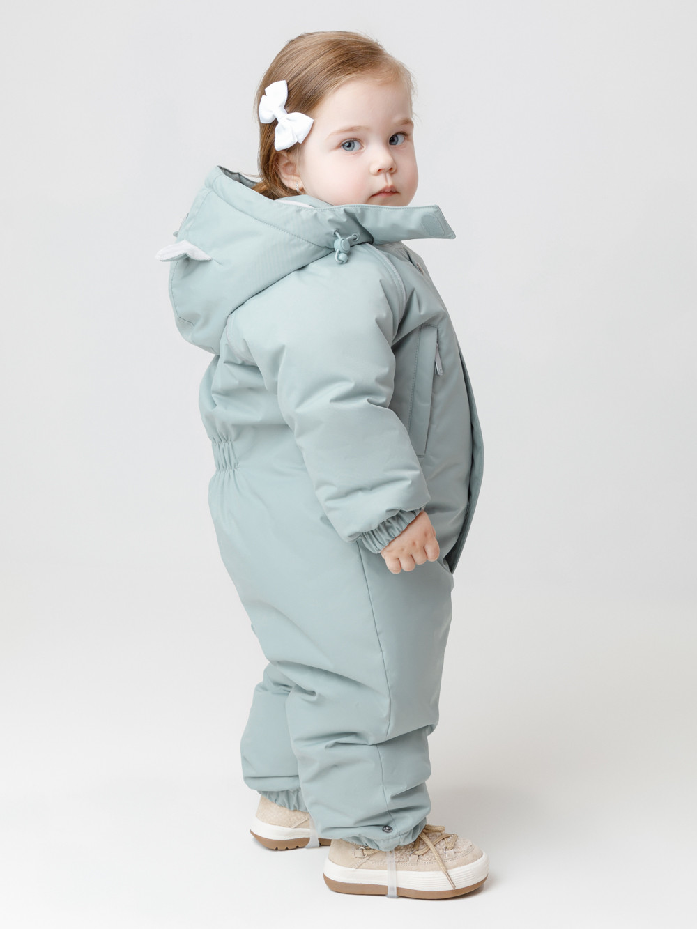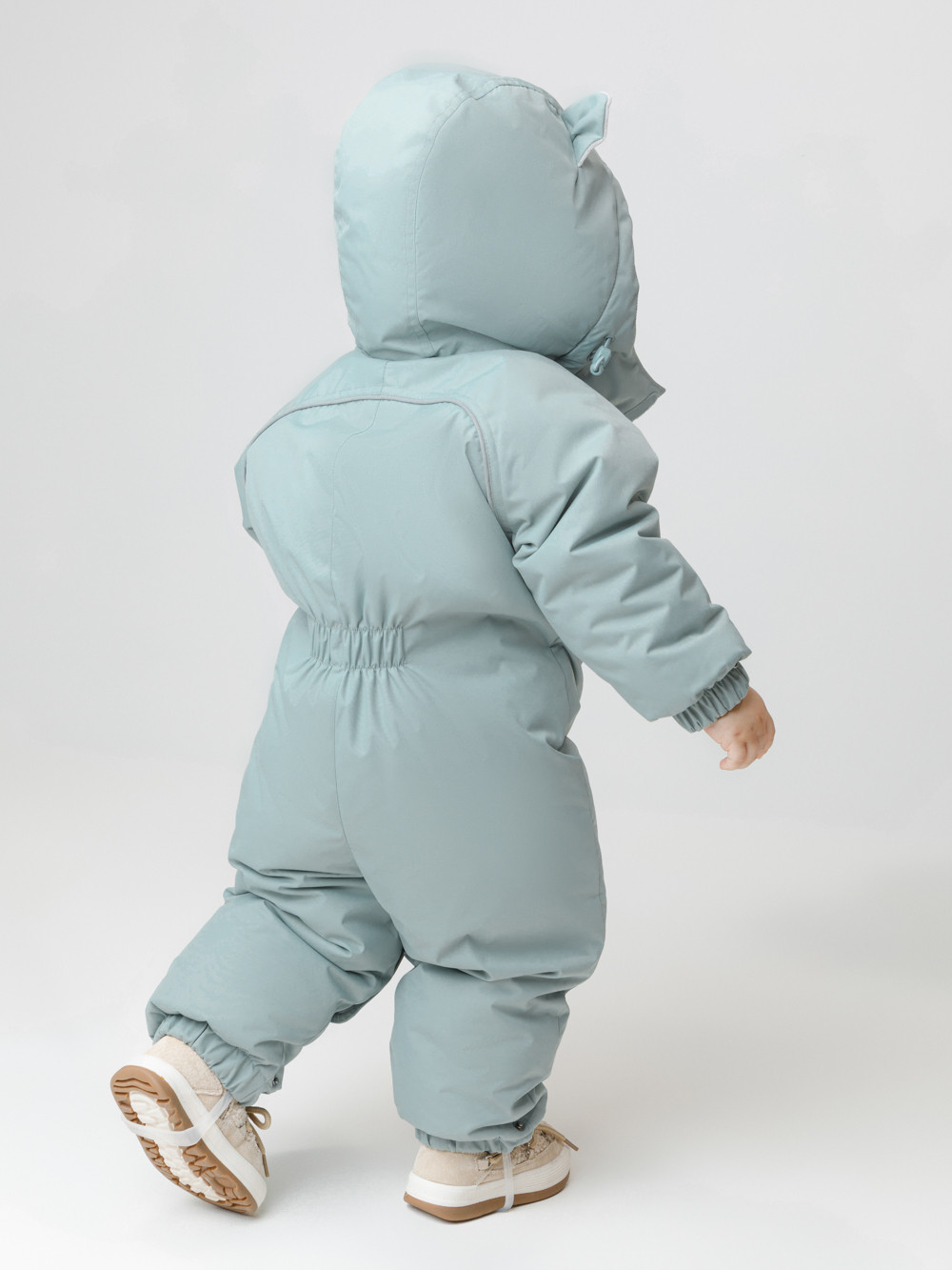 Зимний комбинезон ясельный с утеплителем SEE®: 300 г/м2. Выполнен из мембранной ткани с дополнительной тефлоновой обработкой, которая предохраняет изделие от загрязнений и отталкивает влагу. Подклад выполнен из велюра (80% хлопок, 20% полиэстер) и полиэстера Tricot. Комбинезон застёгивается на молнию и внешнюю планку на липучках, предусмотрена защита подбородка. Несъёмный капюшон имеет эластичную утяжку со стопперами и декоративные ушки. Резинка по спинке для лучшего прилегания. На груди карман на молнии. По рукавам и низу изделия эластичные манжеты, на ножках отстёгивающиеся силиконовые штрипки. До размера 80-86 включительно в комплекте идут рукавицы и пинетки. Во всех изделиях верхнего ассортимента для безопасности ребёнка предусмотрены светоотражающие элементы.