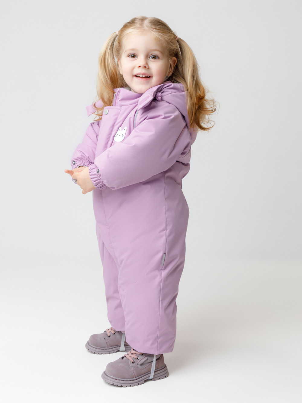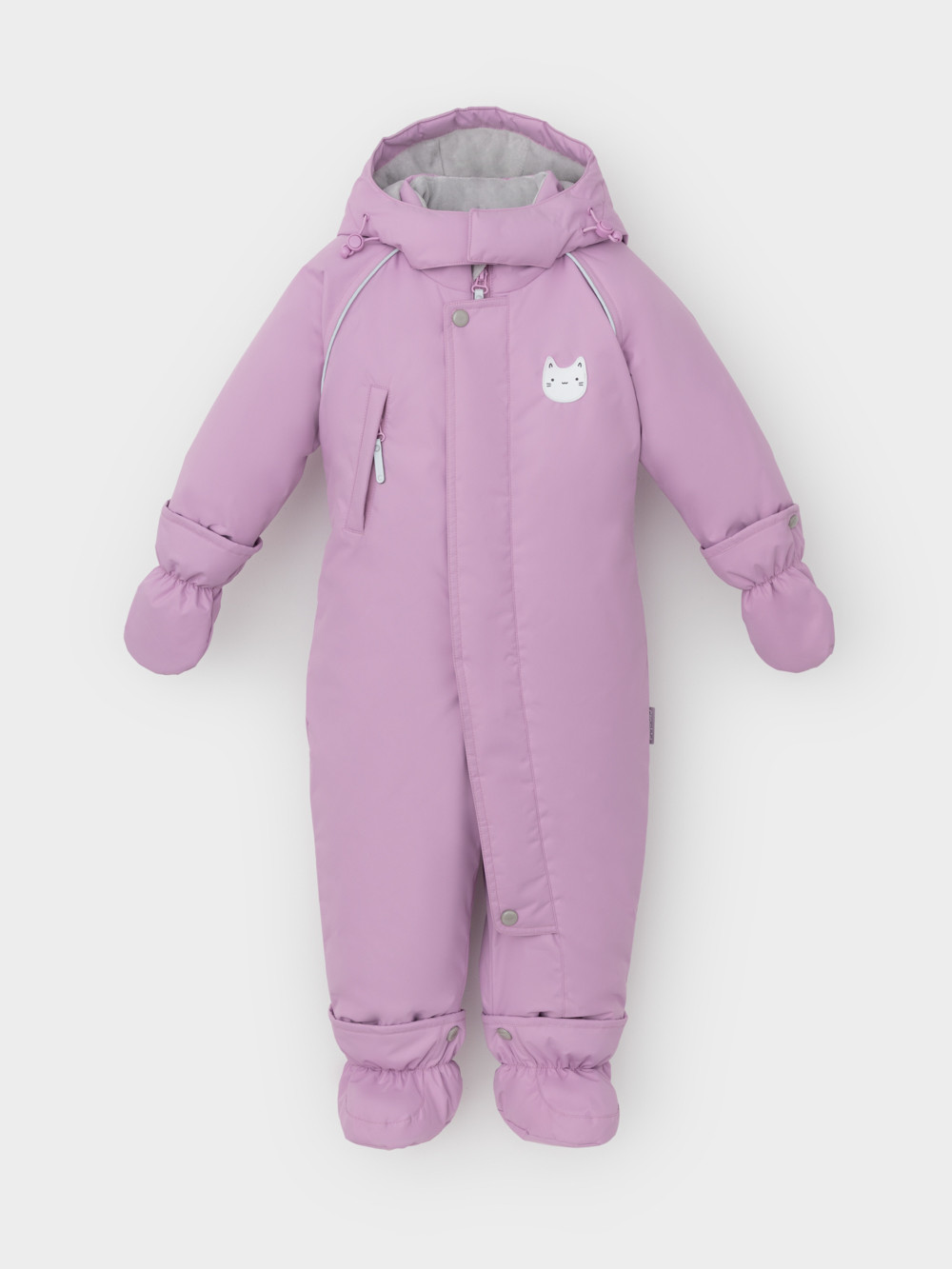Зимний комбинезон ясельный с утеплителем SEE®: 300 г/м2. Выполнен из мембранной ткани с дополнительной тефлоновой обработкой, которая предохраняет изделие от загрязнений и отталкивает влагу. Подклад выполнен из велюра (80% хлопок, 20% полиэстер) и полиэстера Tricot. Комбинезон застёгивается на молнию и внешнюю планку на липучках, предусмотрена защита подбородка. Несъёмный капюшон имеет эластичную утяжку со стопперами и декоративные ушки. Резинка по спинке для лучшего прилегания. На груди карман на молнии. По рукавам и низу изделия эластичные манжеты, на ножках отстёгивающиеся силиконовые штрипки. До размера 80-86 включительно в комплекте идут рукавицы и пинетки. Во всех изделиях верхнего ассортимента для безопасности ребёнка предусмотрены светоотражающие элементы.