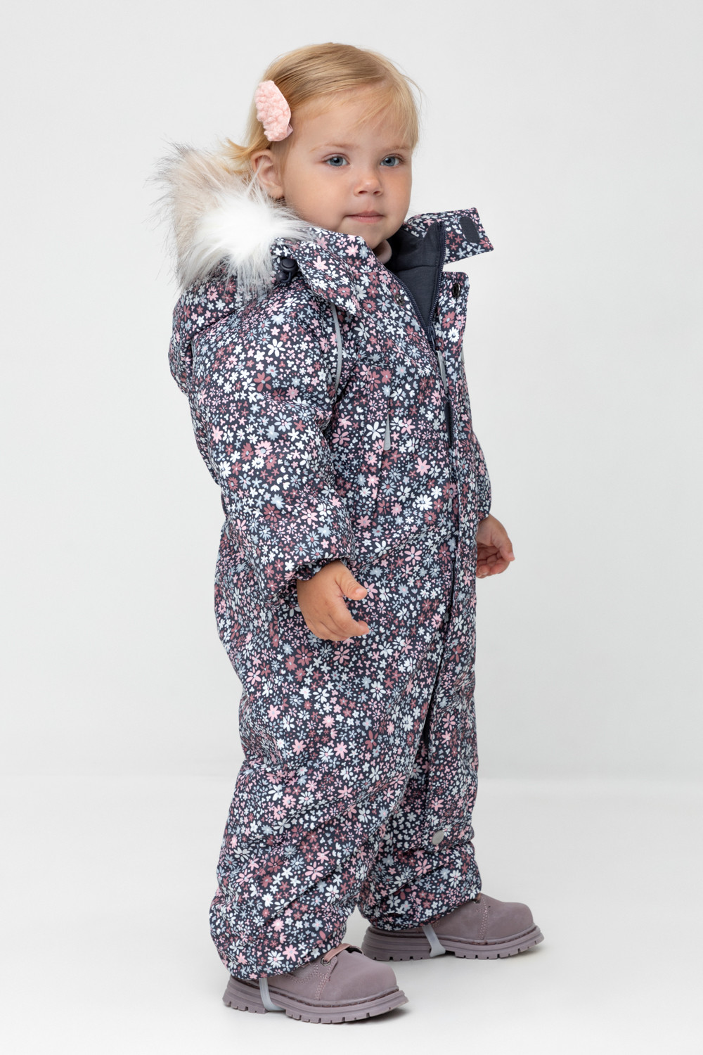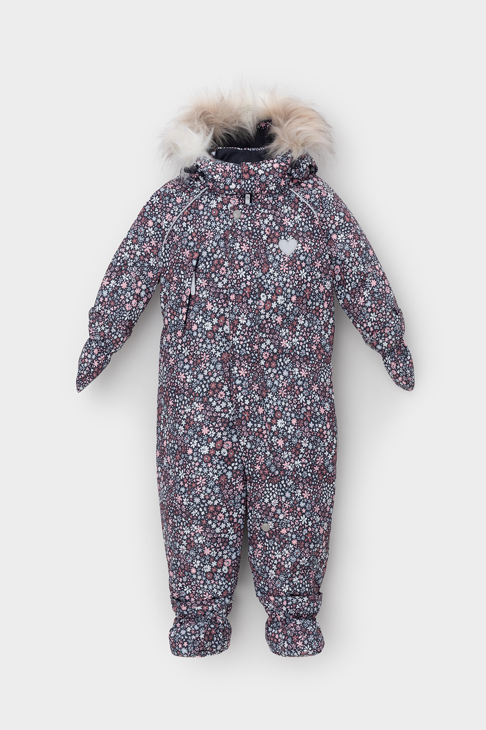 • Дополнительно в размерах 74-80, 80-86 пристегивающиеся утепленные варежки и пинетки.