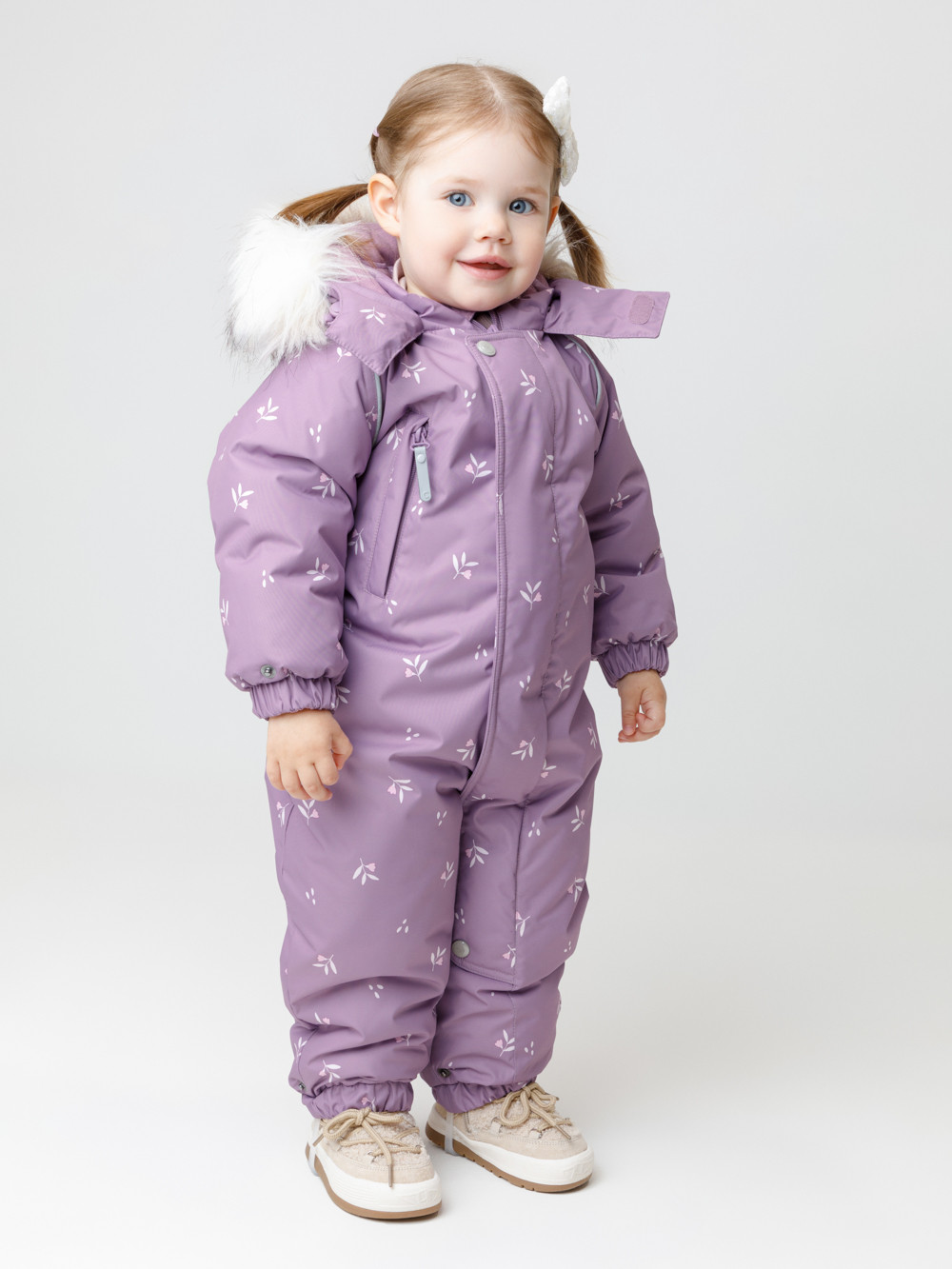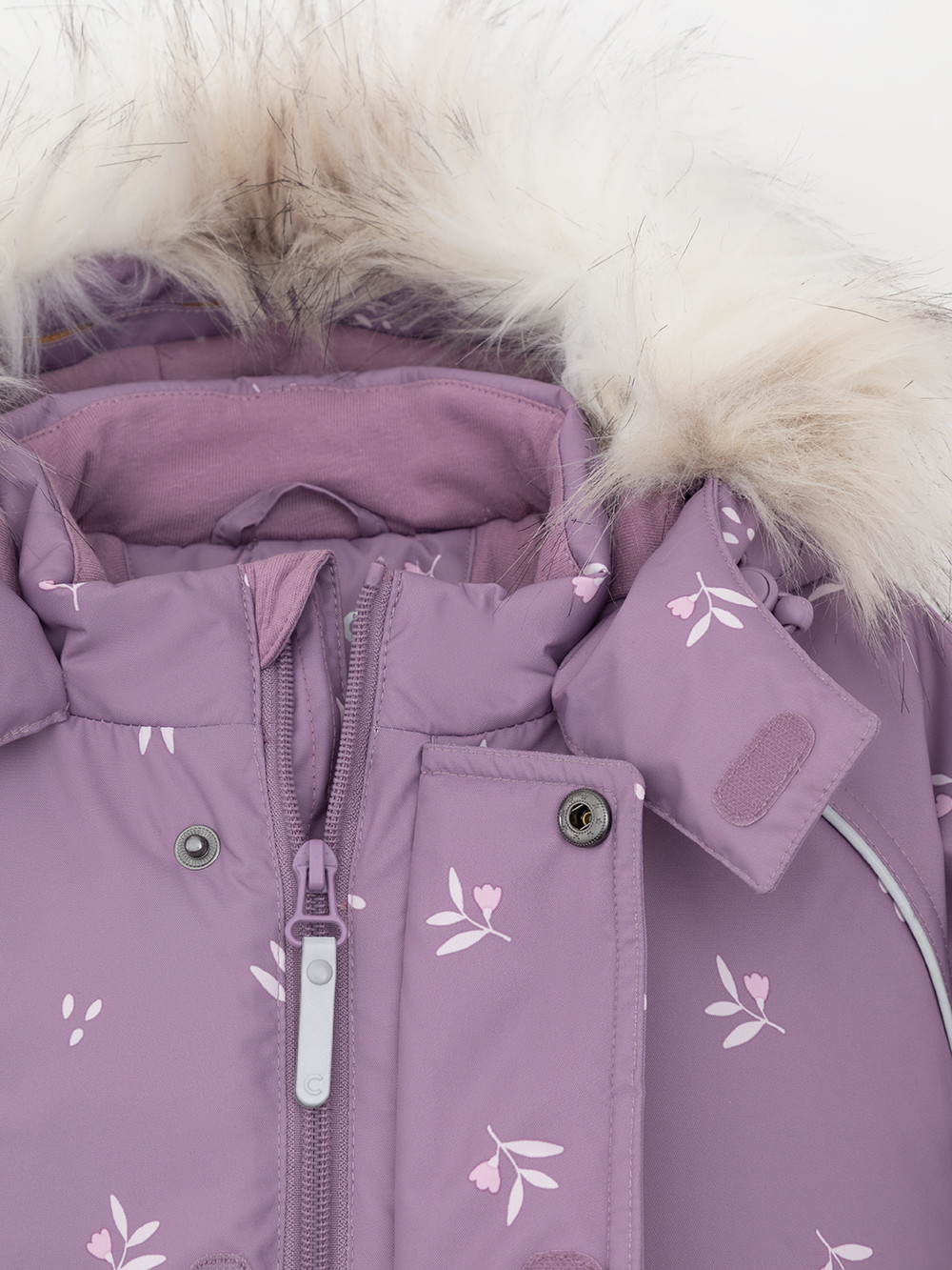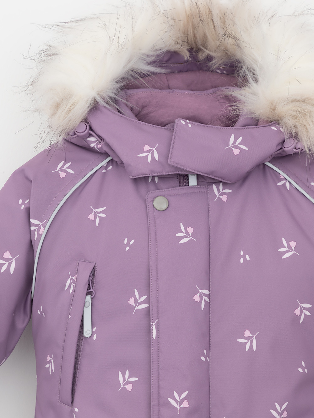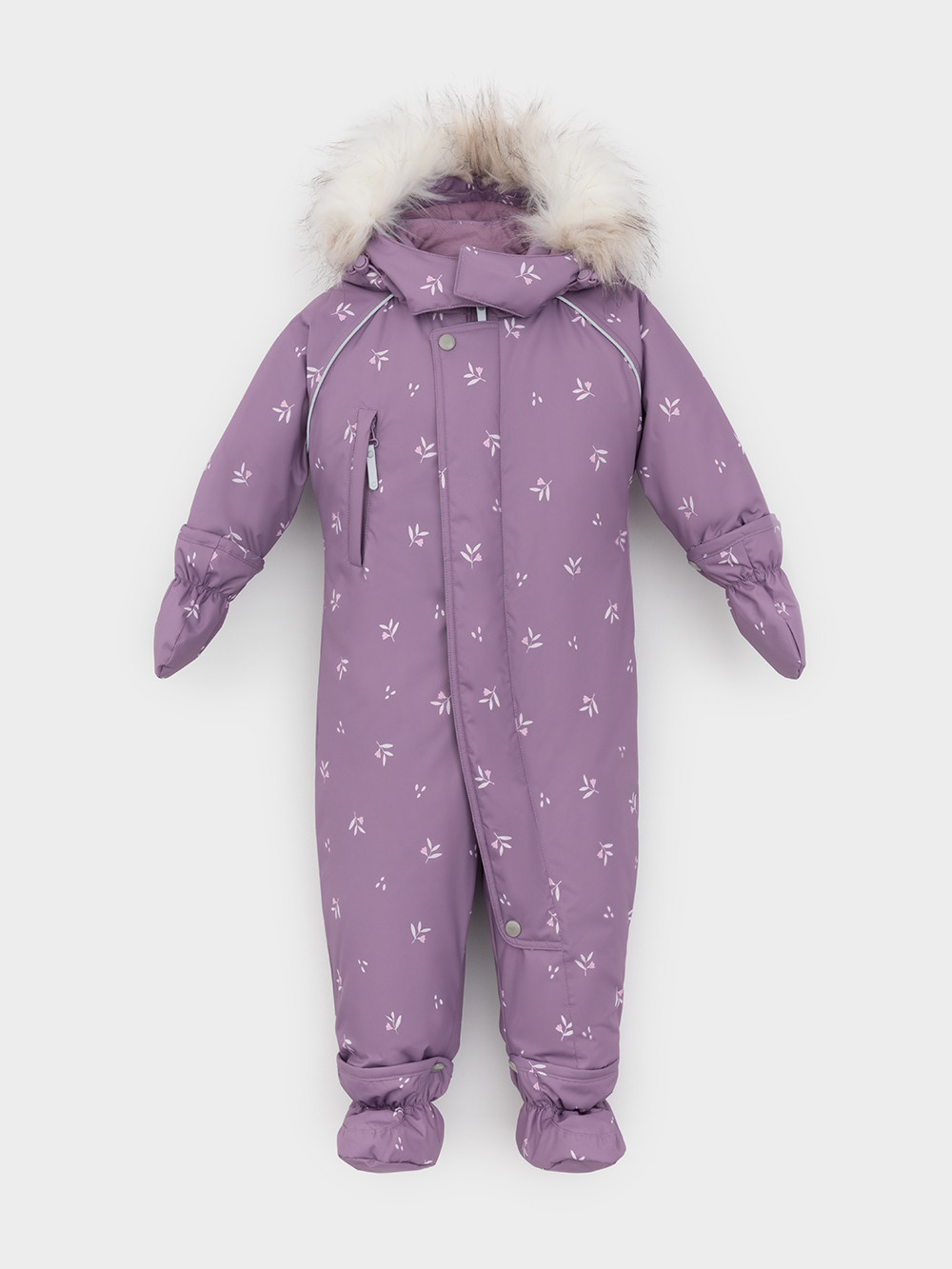 Зимний комбинезон ясельный с утеплителем SEE®: 300 г/м2. Выполнен из мембранной ткани с дополнительной тефлоновой обработкой, которая предохраняет изделие от загрязнений и отталкивает влагу. Подклад выполнен из 100% хлопка. Комбинезон застёгивается на молнию и внешнюю планку на липучках, предусмотрена защита подбородка. Несъёмный капюшон имеет эластичную утяжку со стопперами и отстёгивающийся искусственный мех. Резинка по спинке для лучшего прилегания. На груди карман на молнии. По рукавам и низу изделия эластичные манжеты, на ножках отстёгивающиеся силиконовые штрипки. До размера 80-86 включительно в комплекте идут рукавицы и пинетки. Во всех изделиях верхнего ассортимента для безопасности ребёнка предусмотрены светоотражающие элементы.