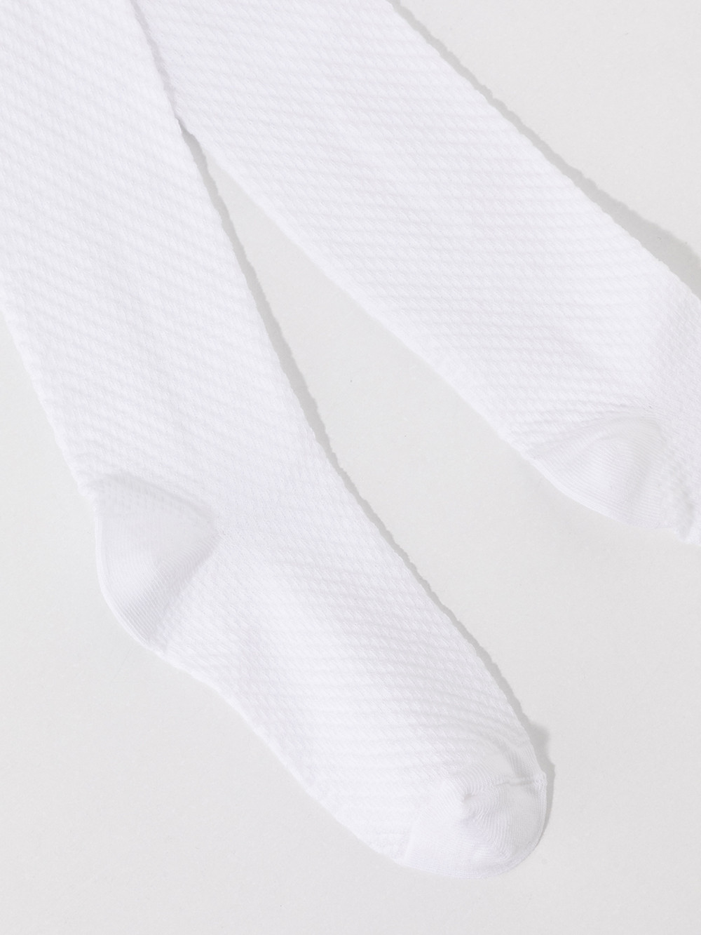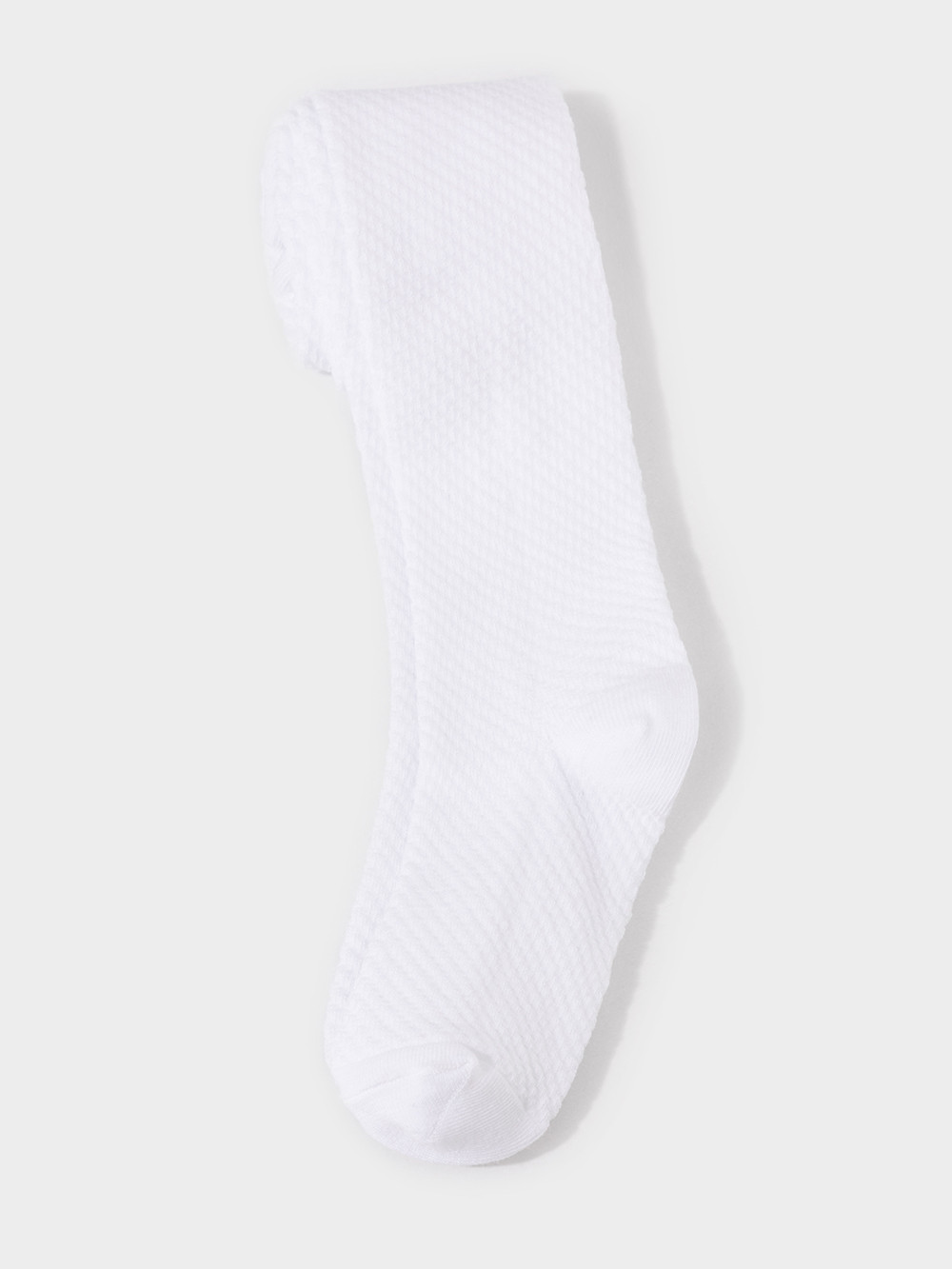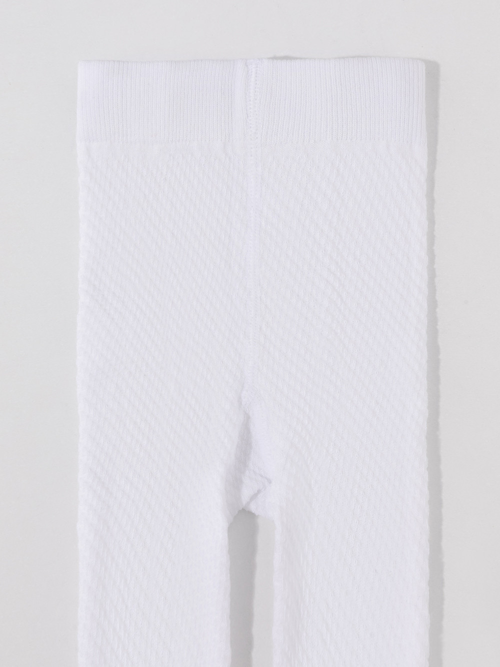 Колготки для девочки однотонные с формованной пяткой и эластичной резинкой в поясе. Связаны ажурным узором.