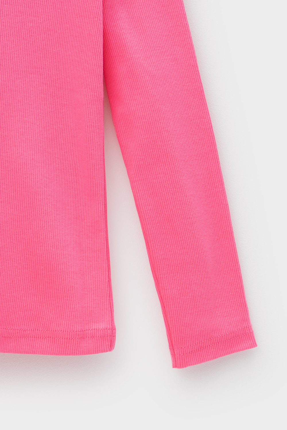 Однотонная детская водолазка из эластичного трикотажа кашкорсе. Длинные рукава. Высокая горловина с отворотом.