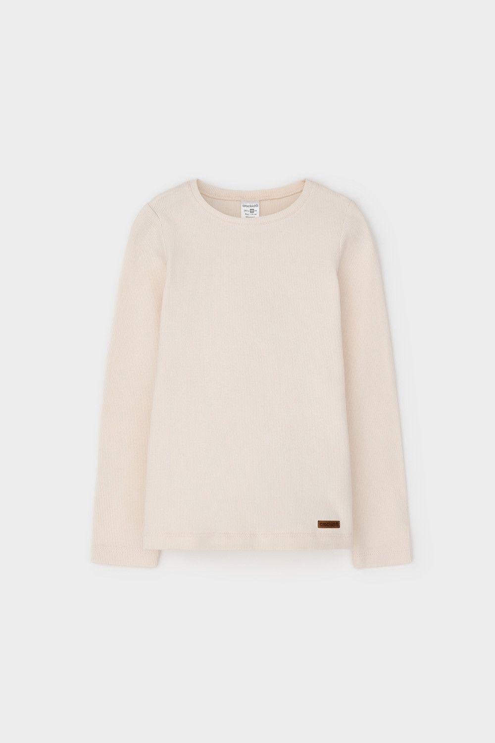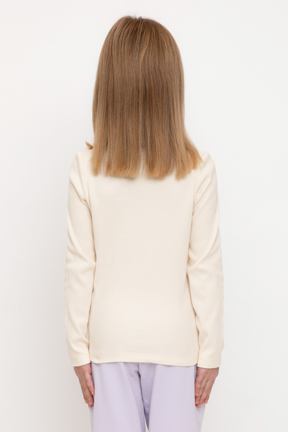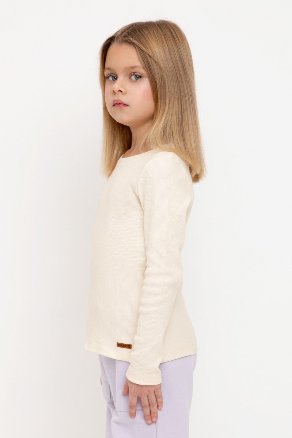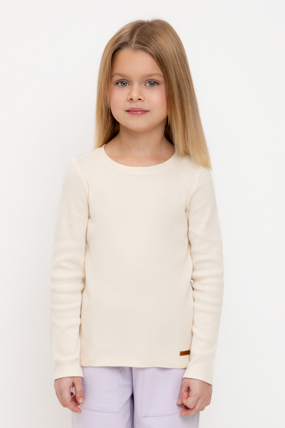 Базовый джемпер для девочки с длинными втачными рукавами из эластичного трикотажа кашкорсе. Изделие сохраняет цвет и форму после многократных стирок.