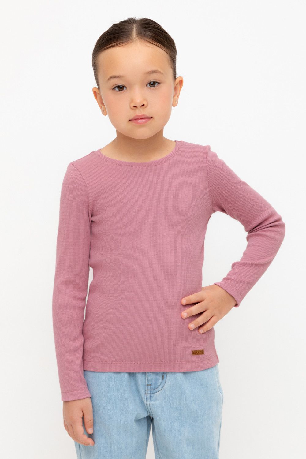 Базовый джемпер для девочки с длинными втачными рукавами из эластичного трикотажа кашкорсе. Изделие сохраняет цвет и форму после многократных стирок.