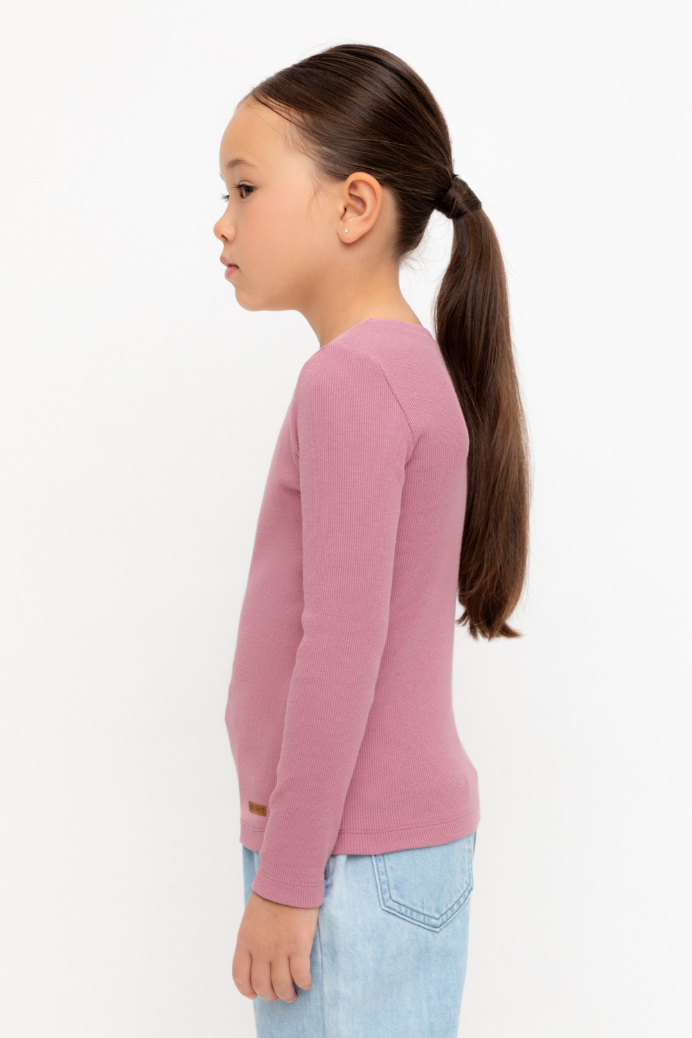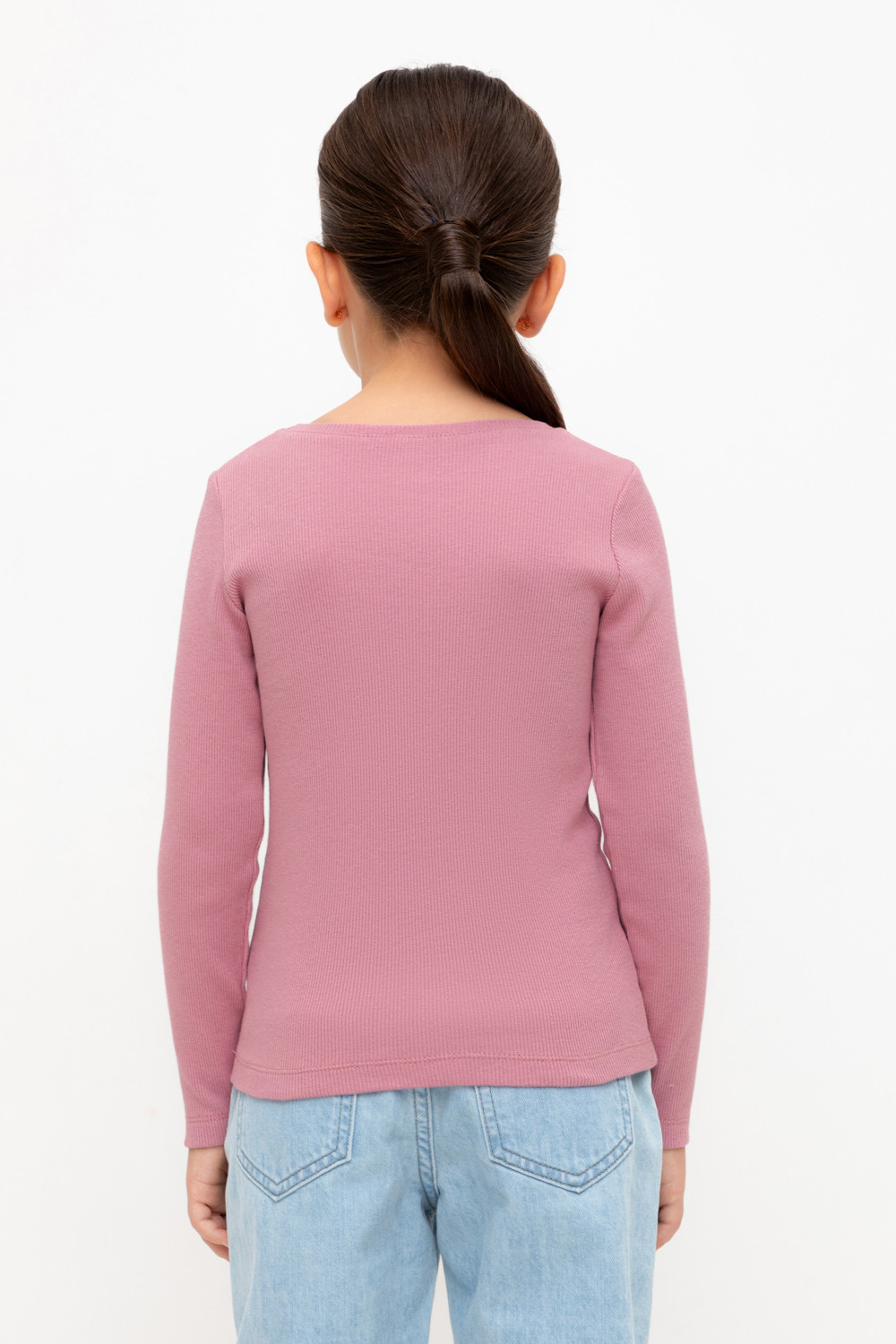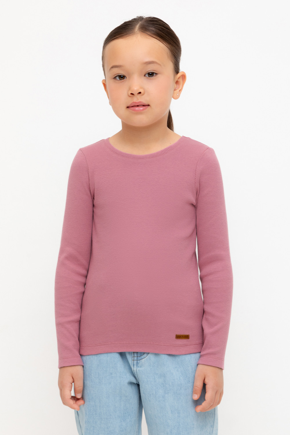 Базовый джемпер для девочки с длинными втачными рукавами из эластичного трикотажа кашкорсе. Изделие сохраняет цвет и форму после многократных стирок.
