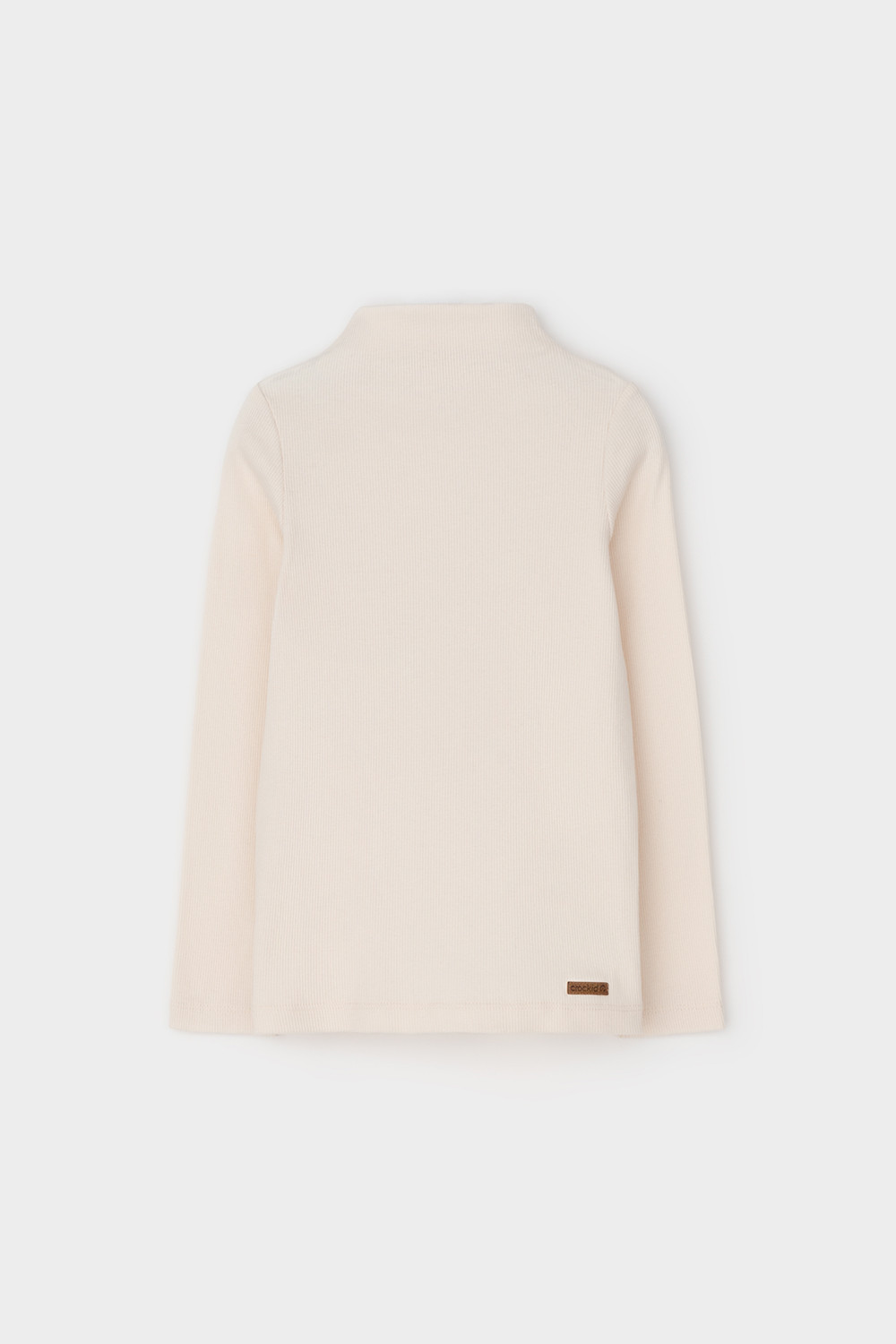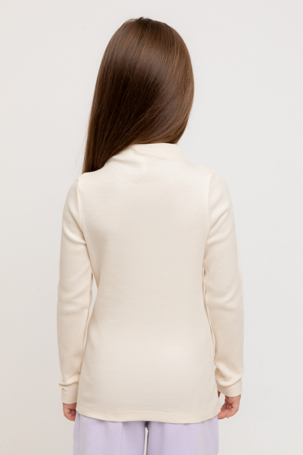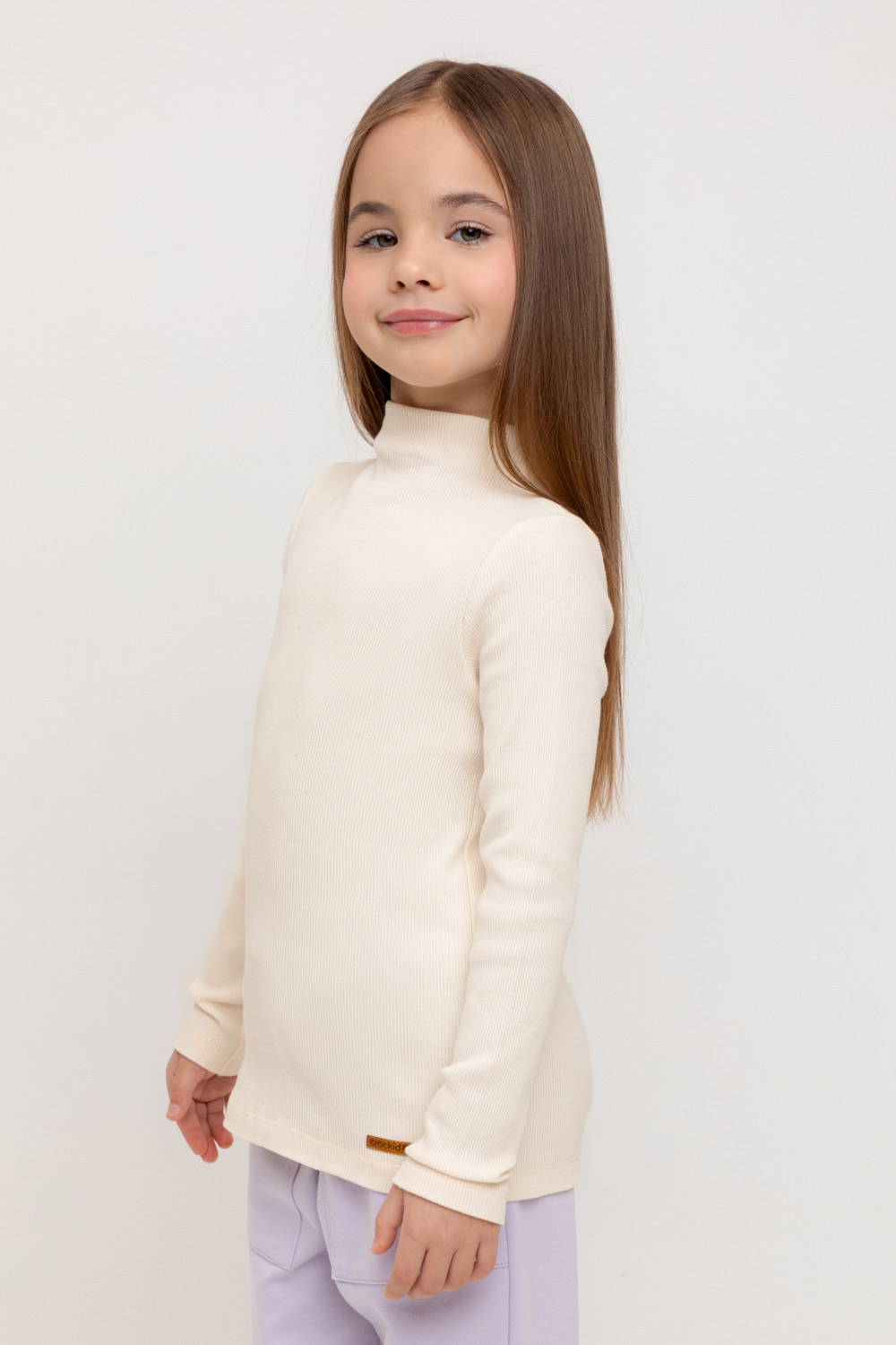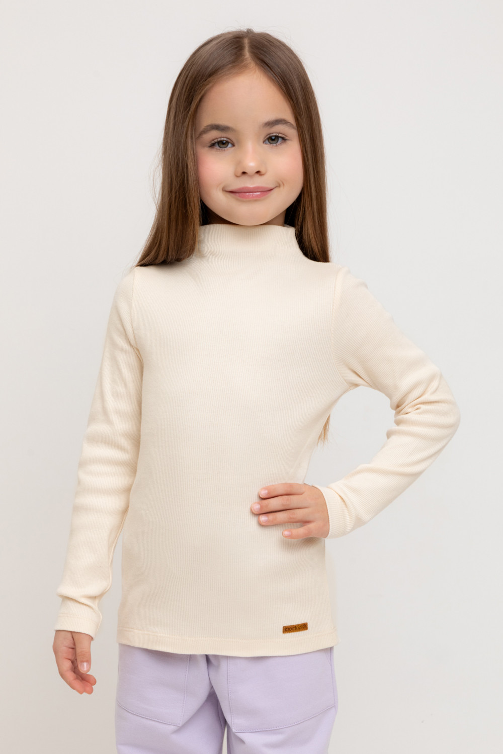 Базовая водолазка для девочки из эластичного трикотажа кашкорсе. Изделие имеет цельнокроенный воротник и длинные втачные рукава. Водолазка сохраняет цвет и форму после многократных стирок.