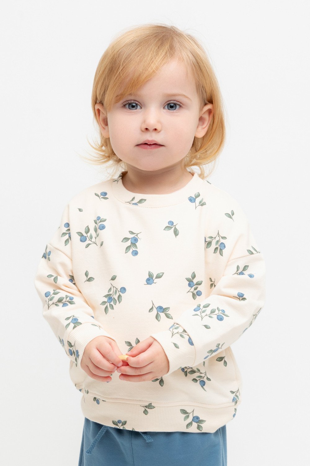 Свитшот для девочки из петельчатого футера. Спущенные плечи придают изделию свободный объём. Оригинальная набивка выполнена из стойких текстильных гипоаллергенных красителей.