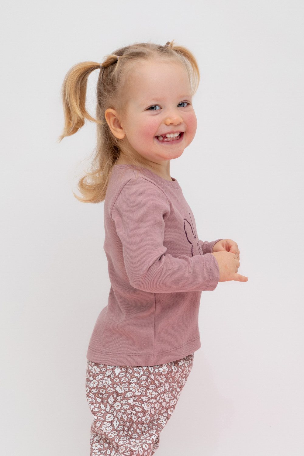 Лонгслив для девочки из высококачественного трикотажного полотна в рубчик. Оригинальный принт выполнен из стойких текстильных красителей.