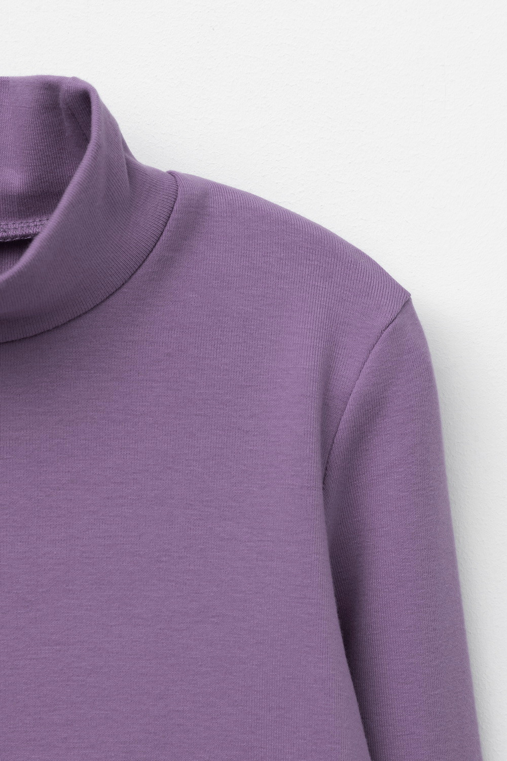 Однотонная водолазка с высоким воротником-стойкой и длинными рукавами. Выполнена из высококачественной эластичной рибаны с начёсом. Эластан в составе позволяет изделию быть более эластичным и дольше сохранять форму. Воротник защищает горло от прохладного воздуха.
