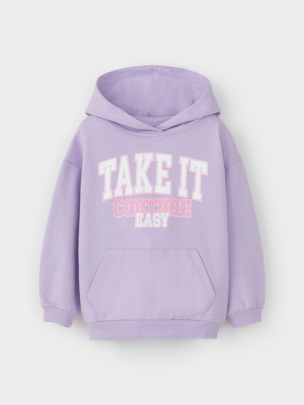 Толстовка с капюшоном для девочки из мягкого петельчатого футера. На рукавах и по низу изделия эластичные манжеты и пояс. Спереди удобный карман-кенгуру. Принт выполнен из стойких текстильных гипоаллергенных красителей.
