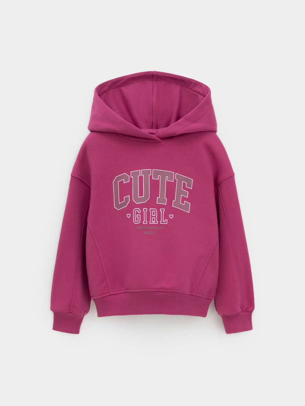 Худи с капюшоном для девочки из тёплого футера с начёсом. Модель оверсайз. Пояс и манжеты выполнены из мягкого эластичного трикотажа. Худи сохраняет форму и стойкий цвет после многочисленных стирок и идеально подходит на каждый день. Оригинальный принт выполнен из стойких текстильных гипоаллергенных красителей. Все трикотажные полотна производятся в соответствии с нормами швейцарского сертификата ЭкоТекс.