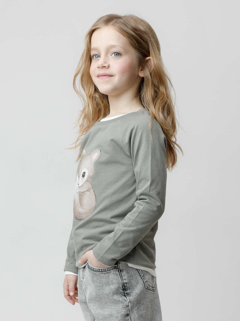 Лонгслив для девочки из гладкого трикотажа, произведённого из высококачественного натурального хлопка. Застёгивается на кнопки в размерах 92 и 98. Оригинальный принт выполнен из стойких текстильных гипоаллергенных красителей. Изделие сохраняет цвет и форму после многократных стирок. Все трикотажные полотна производятся в соответствии с нормами швейцарского сертификата ЭкоТекс.