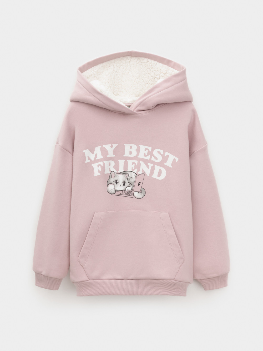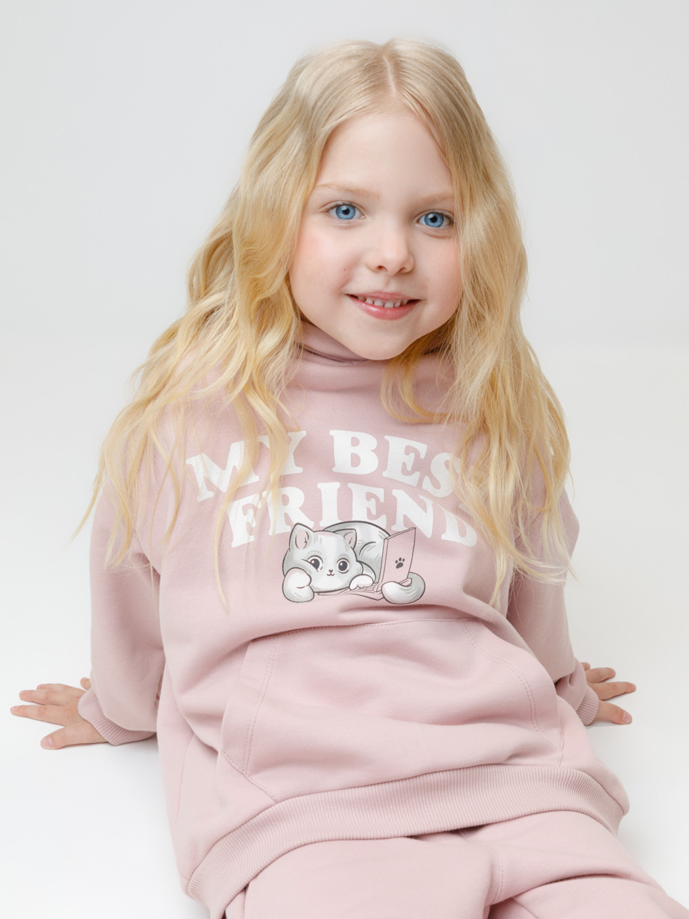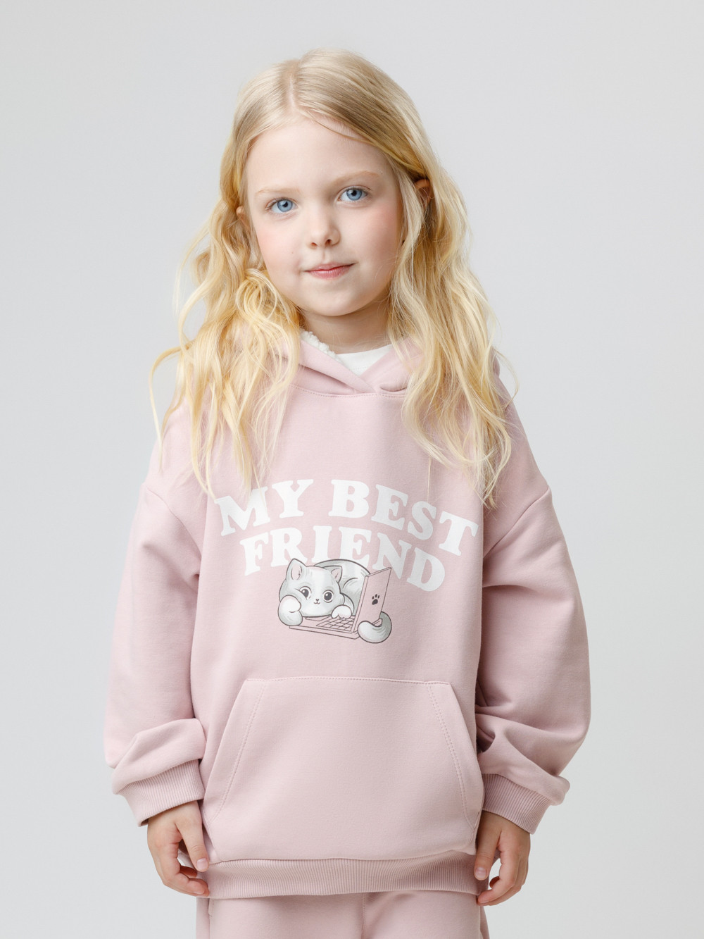 Худи для девочки со спущенными плечами. Изготовлено из высококачественного петельчатого футера трёхнитки. В капюшоне мягкий подклад из флиса с длинным ворсом. Манжеты и пояс выполнены из эластичного полотна. Спереди удобный вместительный карман-кенгуру. Изделие сохраняет цвет и форму после многократных стирок. Все трикотажные полотна производятся в соответствии с нормами швейцарского сертификата ЭкоТекс.