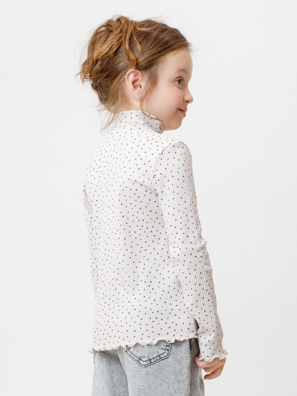 Водолазка для девочки из эластичного трикотажа в рубчик. Изделие сохраняет цвет и форму после многократных стирок. Все трикотажные полотна производятся в соответствии с нормами швейцарского сертификата ЭкоТекс.