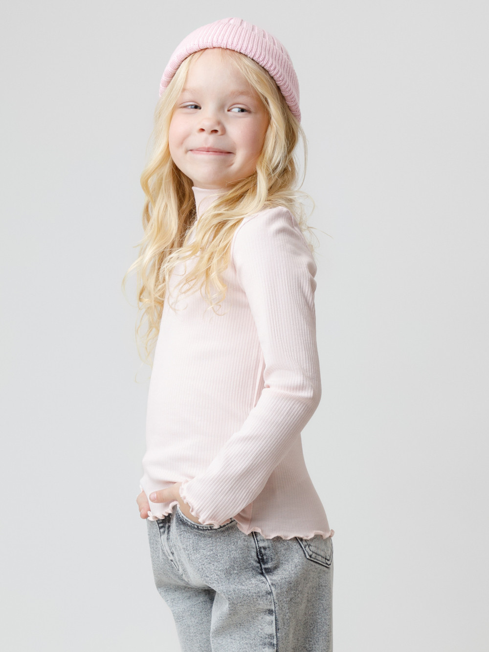 Водолазка базовая для девочки из эластичного трикотажа в рубчик. Изделие сохраняет цвет и форму после многократных стирок. Все трикотажные полотна производятся в соответствии с нормами швейцарского сертификата ЭкоТекс.
