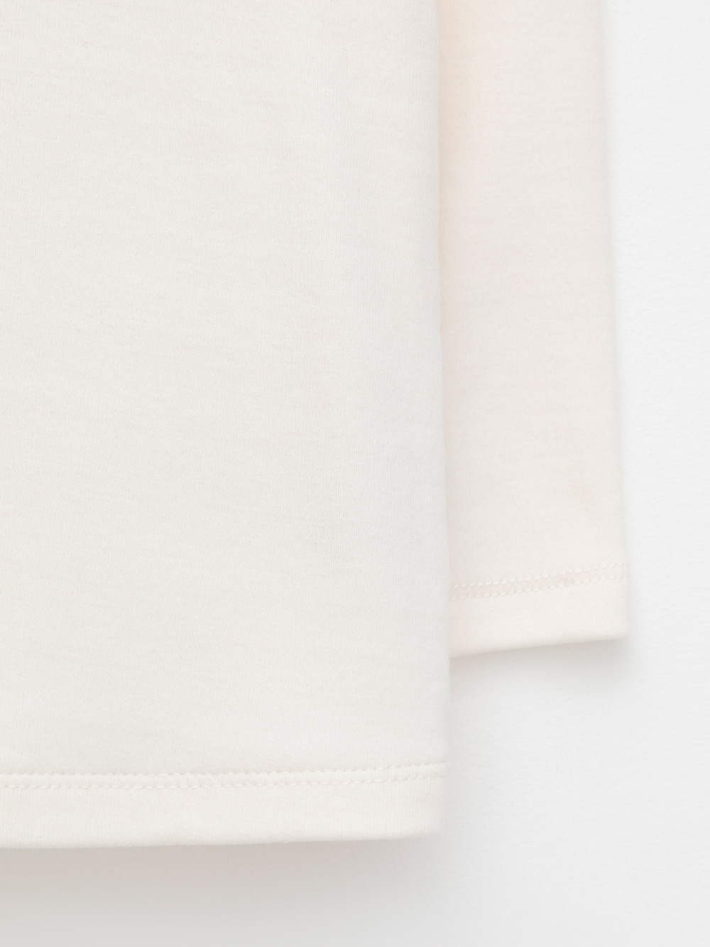 Тёплый лонгслив для девочки из трикотажа в рубчик с начёсом. Застёгивается на спинке на планку с кнопками. Оригинальный принт выполнен из стойких текстильных гипоаллергенных красителей. Изделие сохраняет цвет и форму после многократных стирок. Все трикотажные полотна производятся в соответствии с нормами швейцарского сертификата ЭкоТекс.